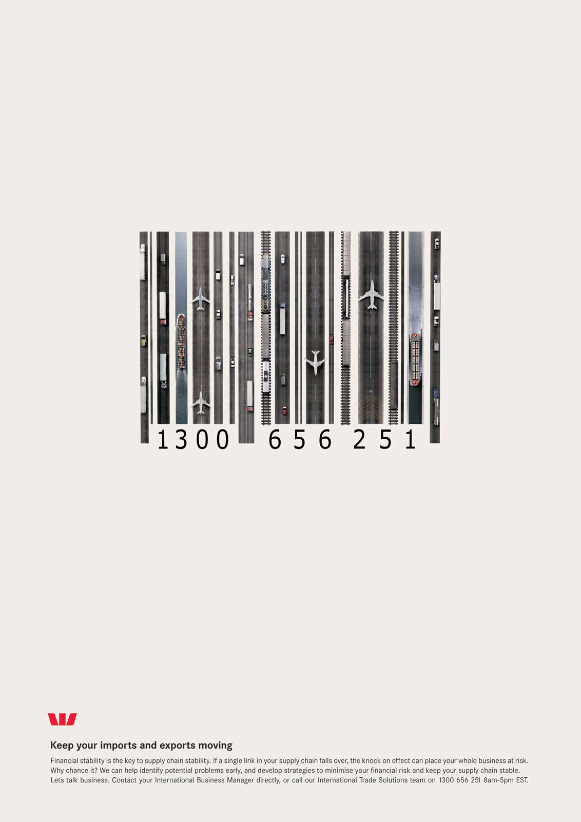 This professional campaign titled 'Bar code, Limo, Jet, Boat' was published in Australia in December, 2010. It was created for the brand: Westpac, by ad agency: Lavender. This Print medium campaign is related to the Finance industry and contains 4 media assets. It was submitted almost 15 years ago.