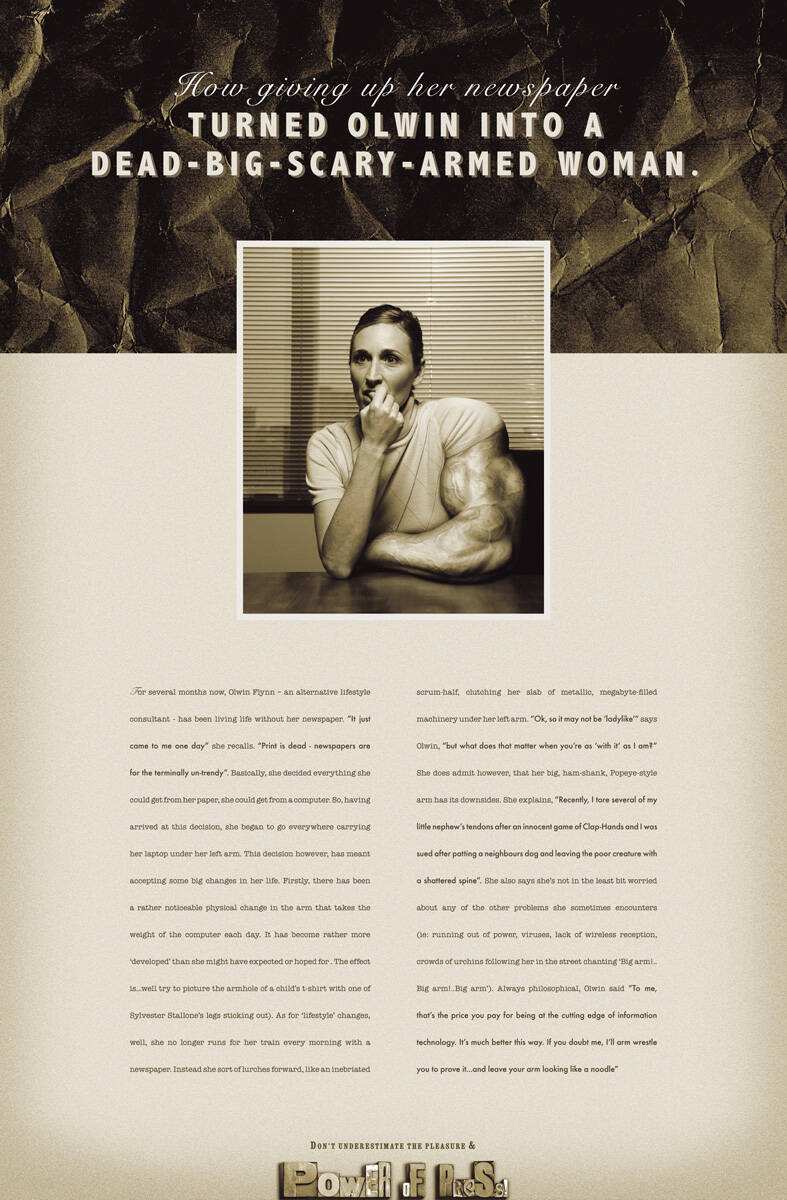 This professional campaign titled 'Bartholomew, Norman, Olwin' was published in Ireland in April, 2008. It was created for the brand: National Newspapers of Ireland, by ad agency: Publicis. This Print medium campaign is related to the Media industry and contains 3 media assets. It was submitted over 17 years ago.