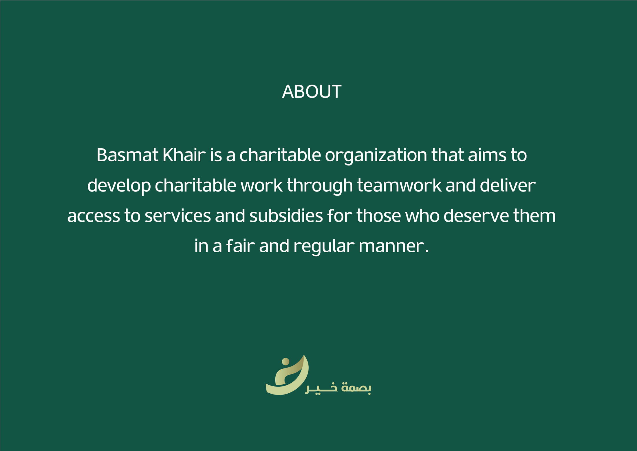Basmat Khair is a charitable organization that aims to develop charitable work through teamwork and deliver access to services and subsidies for those who deserve them in a fair and regular manner.