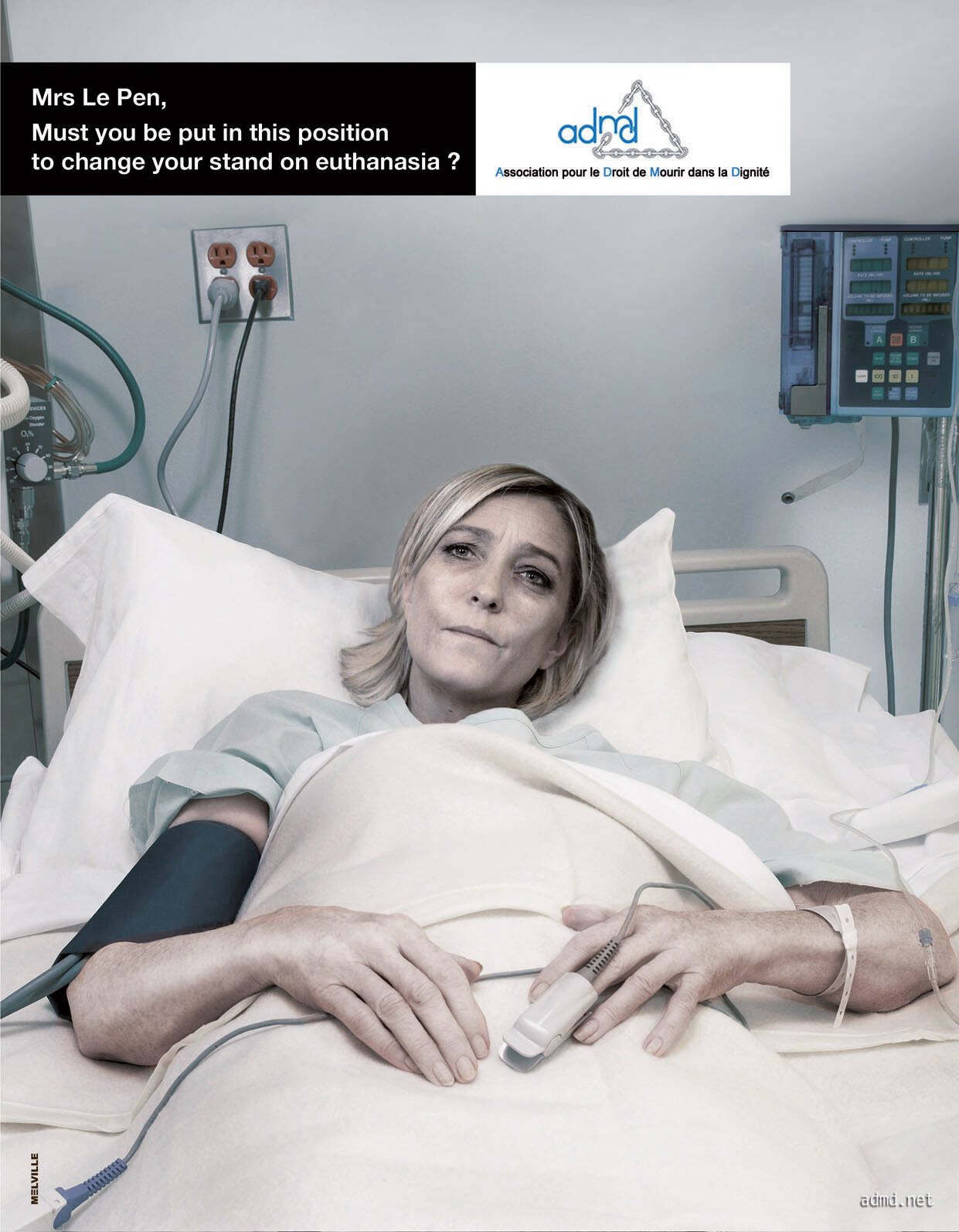 This professional campaign titled 'Bayrou, Le Pen, Sarkozy' was published in France in March, 2012. It was created for the brand: ADMD, by ad agency: Melville. This Print medium campaign is related to the Public Interest industry and contains 3 media assets. It was submitted almost 14 years ago.