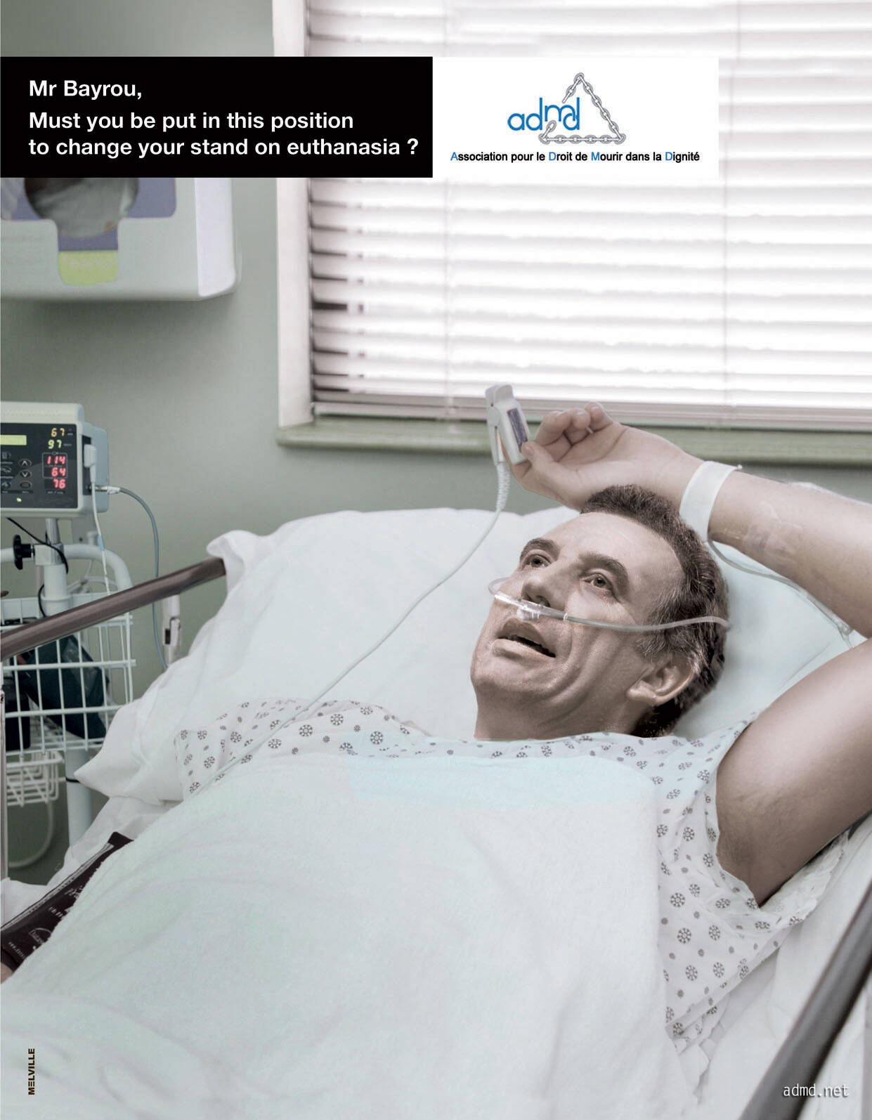 This professional campaign titled 'Bayrou, Le Pen, Sarkozy' was published in France in March, 2012. It was created for the brand: ADMD, by ad agency: Melville. This Print medium campaign is related to the Public Interest industry and contains 3 media assets. It was submitted over 13 years ago.