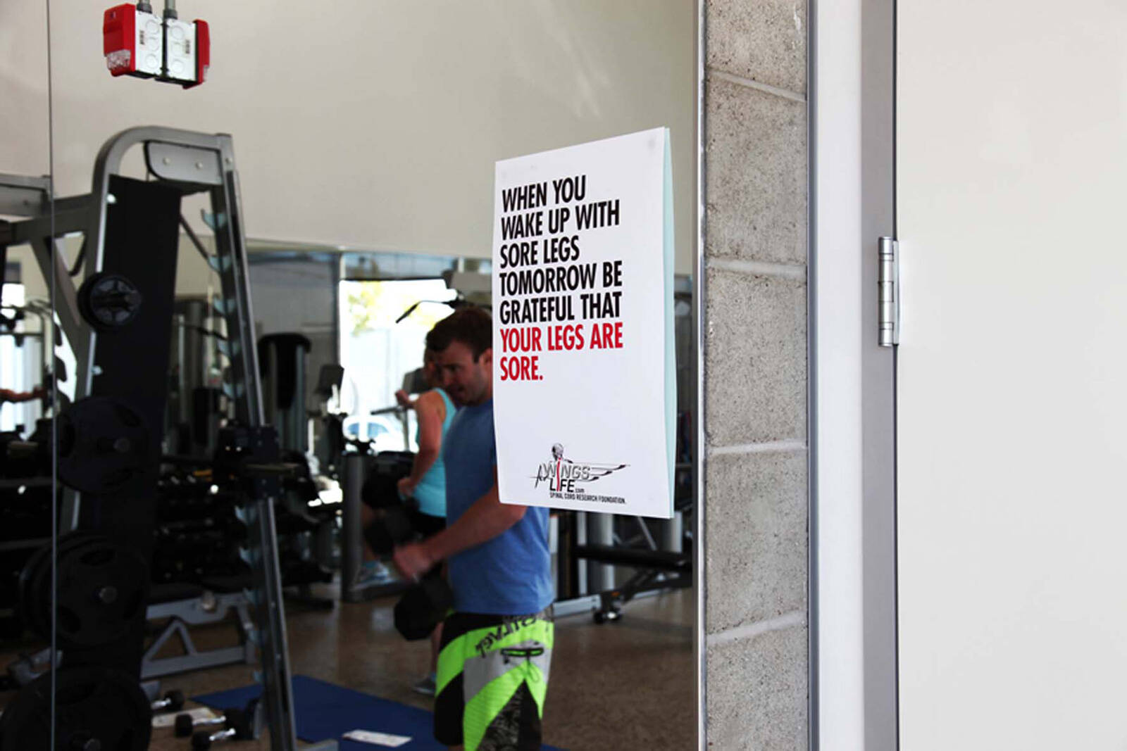 A campaign to create brand awareness for Wings for Life, a spinal cord research foundation. The messaging was strategically placed in areas where people should appreciate their mobility.