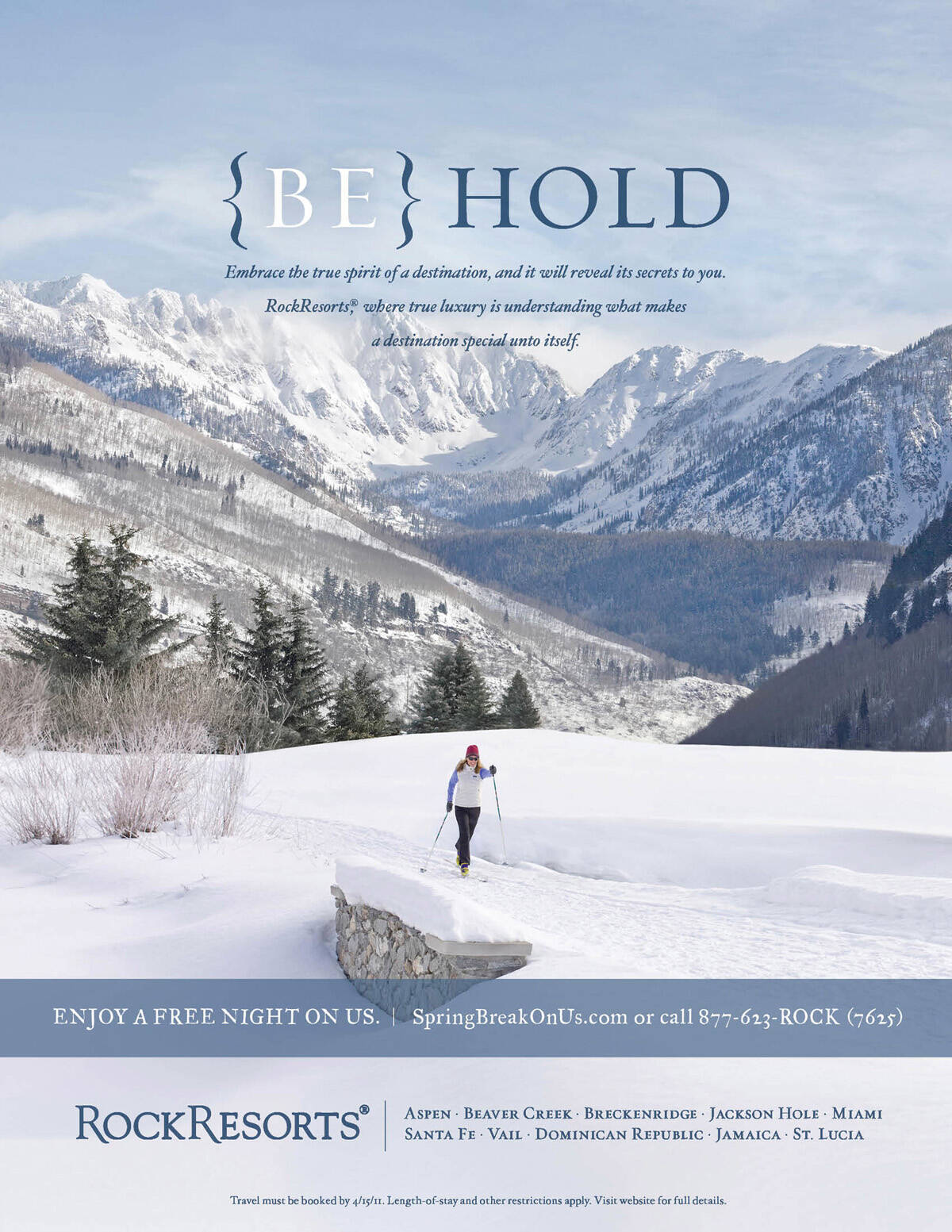 This professional campaign titled '{Be} Longing, {Be} Hold, {Be} Hold, {Be} Come, {Be} Hold' was published in United States in March, 2011. It was created for the brand: RockResorts, by ad agency: Cultivator. This Print medium campaign is related to the Transport industry and contains 5 media assets. It was submitted over 14 years ago.