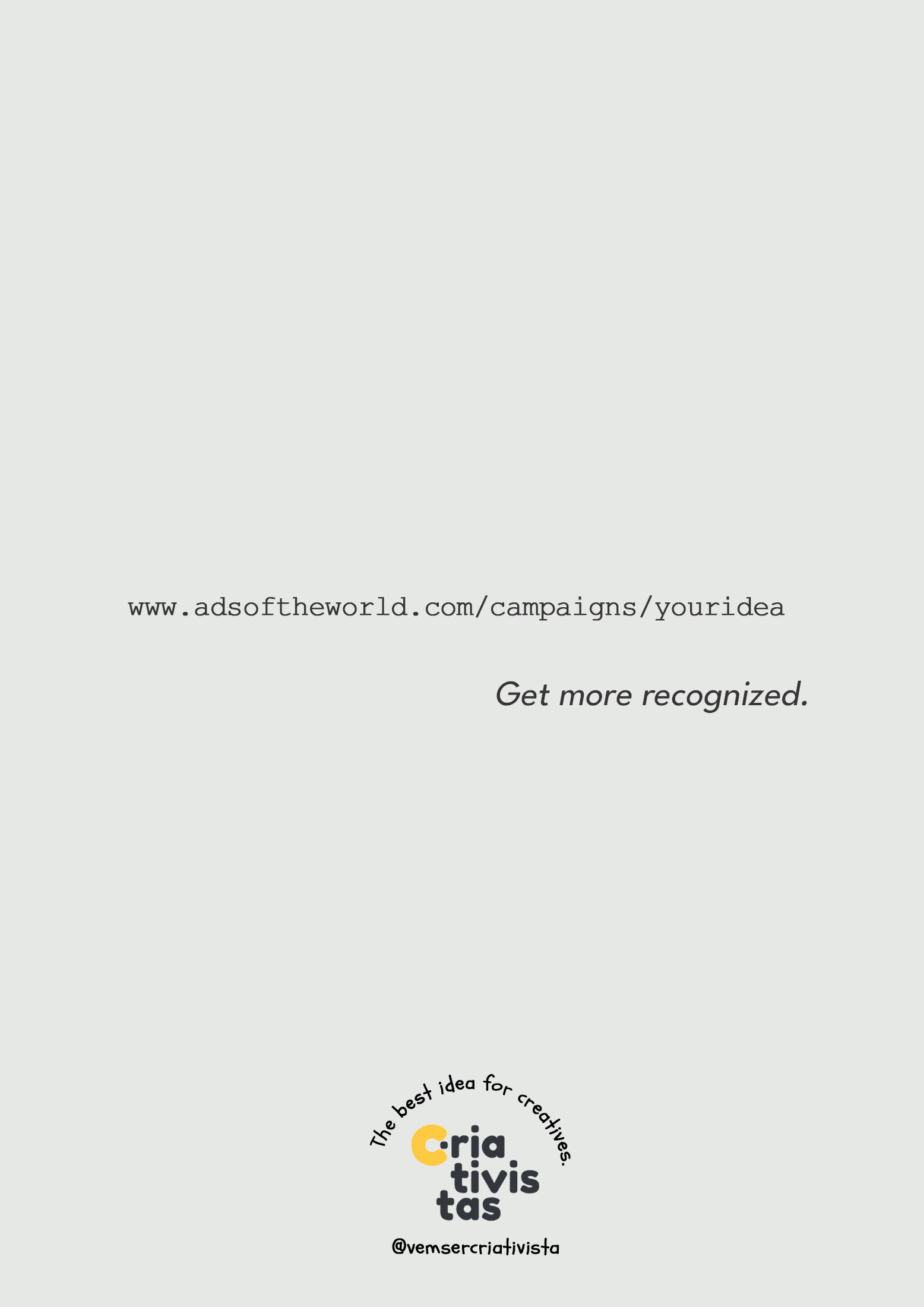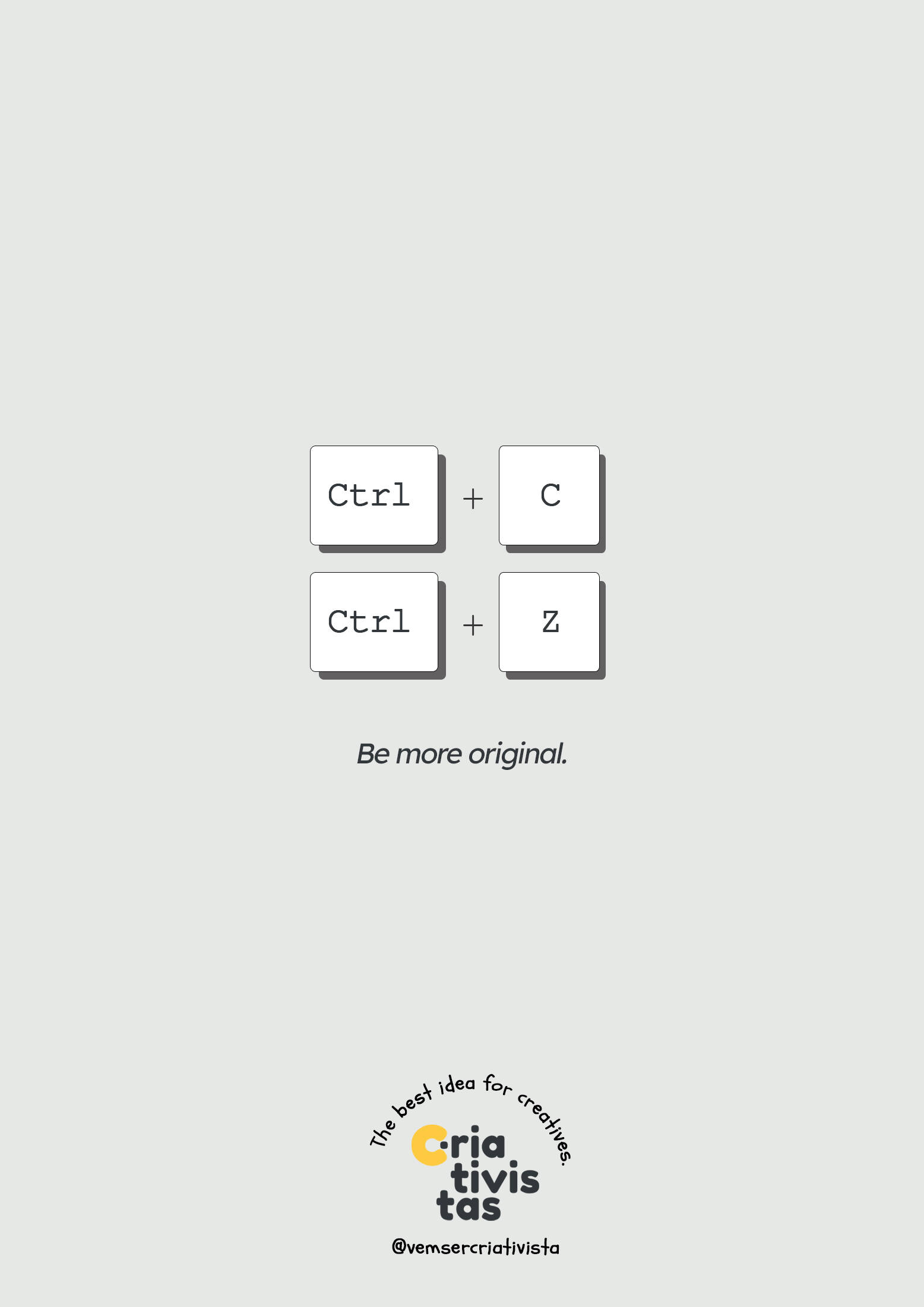 This professional campaign titled 'Be more original.' was published in Brazil in February, 2023. It was created for the brand: Criativistas, by ad agency: Criativistas. This Digital and Print media campaign is related to the Agency Self-Promo industry and contains 3 media assets. It was submitted almost 3 years ago by O futuro precisa de boas ideias.: Criativistas of Agência de Criatividade Ativista.