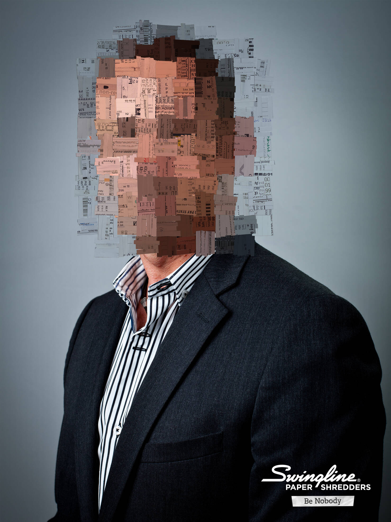 This student campaign titled 'Be Nobody' was published in United States in August, 2017. It was created for the brand: Swingline Paper Shredder, by ad school: The University of Texas. This Print medium campaign is related to the Office Equipment industry and contains 3 media assets. It was submitted over 8 years ago.