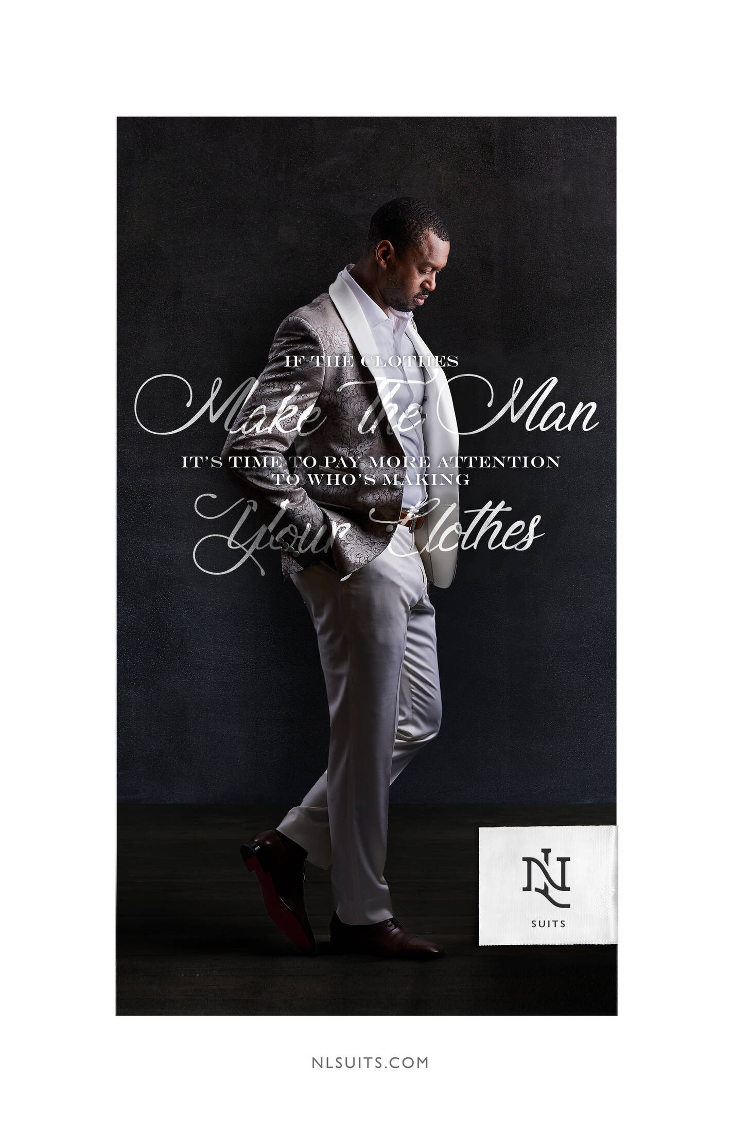 NL Suits is a boutique men's clothing store, specializing in bespoke suits and high end fashion. We wanted their store front to convey the sophistication and craftsmanship that go into every suit, no matter your style. We did that by fitting the headlines around our models.