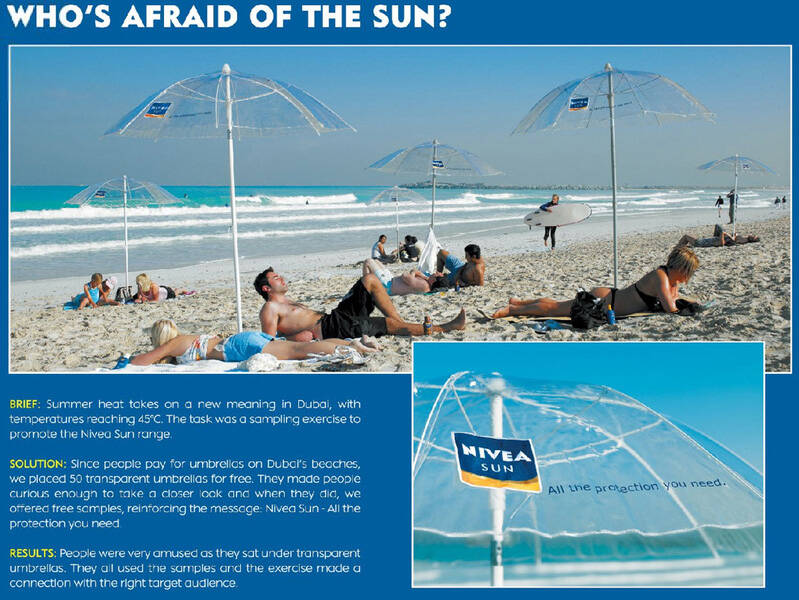 This professional campaign titled 'Beach' was published in United Arab Emirates in October, 2008. It was created for the brand: Nivea, by ad agency: TBWA. This Ambient medium campaign is related to the Health industry and contains 1 media asset. It was submitted about 17 years ago.