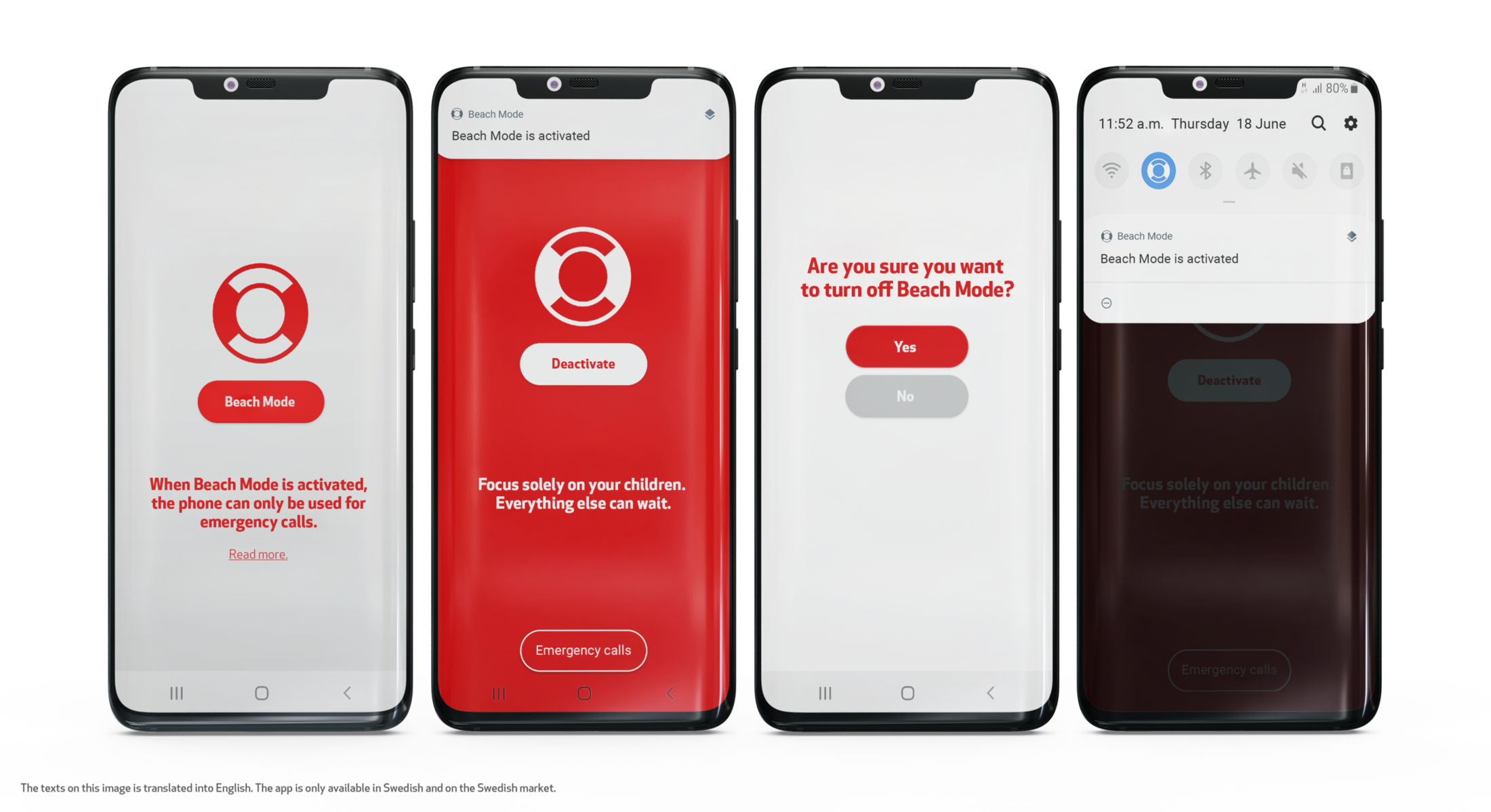 In Sweden, drowning is the most common fatal accident among children between the ages of one and six and is often the result of lacking parental supervision. Swedes spend an average of 3.5 hours using mobile phones every day, and scrolling on a mobile phone on the beach could end in tragedy. Drowning can be quick and is often silent. Insurance company Trygg-Hansa is now launching the Badläge (Beach Mode) initiative, aimed at reducing the number of near-drowning accidents and to prevent children from drowning. Through Badläge, Trygg-Hansa wants to encourage parents to keep an eye on their children on the beach by turning Badläge on, both mentally and in their mobile phone. When Trygg-Hansa’s new Badläge app is activated, the phone can only be used for emergency calls and it becomes easier to focus on the children. Badläge (Beach Mode) is available for Android devices on the Swedish market. Unlike flight mode, Badläge blocks apps when activated. It still allows Swedish emergency calls in case of an emergency. When Badläge is deactivated, the phone works normally and you can see missed calls, messages and notifications.