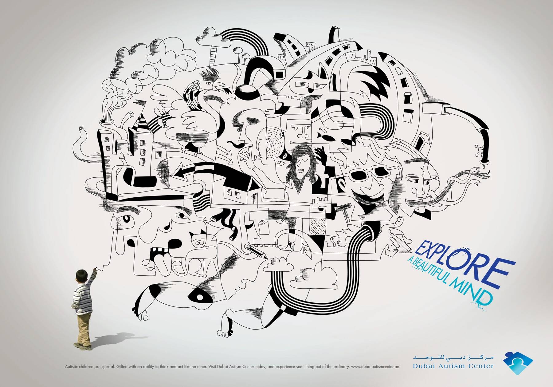 This professional campaign titled 'Beautiful Mind' was published in United Arab Emirates in June, 2013. It was created for the brand: Dubai Autism Center, by ad agency: Entourage. This Print medium campaign is related to the Public Interest industry and contains 2 media assets. It was submitted over 12 years ago.