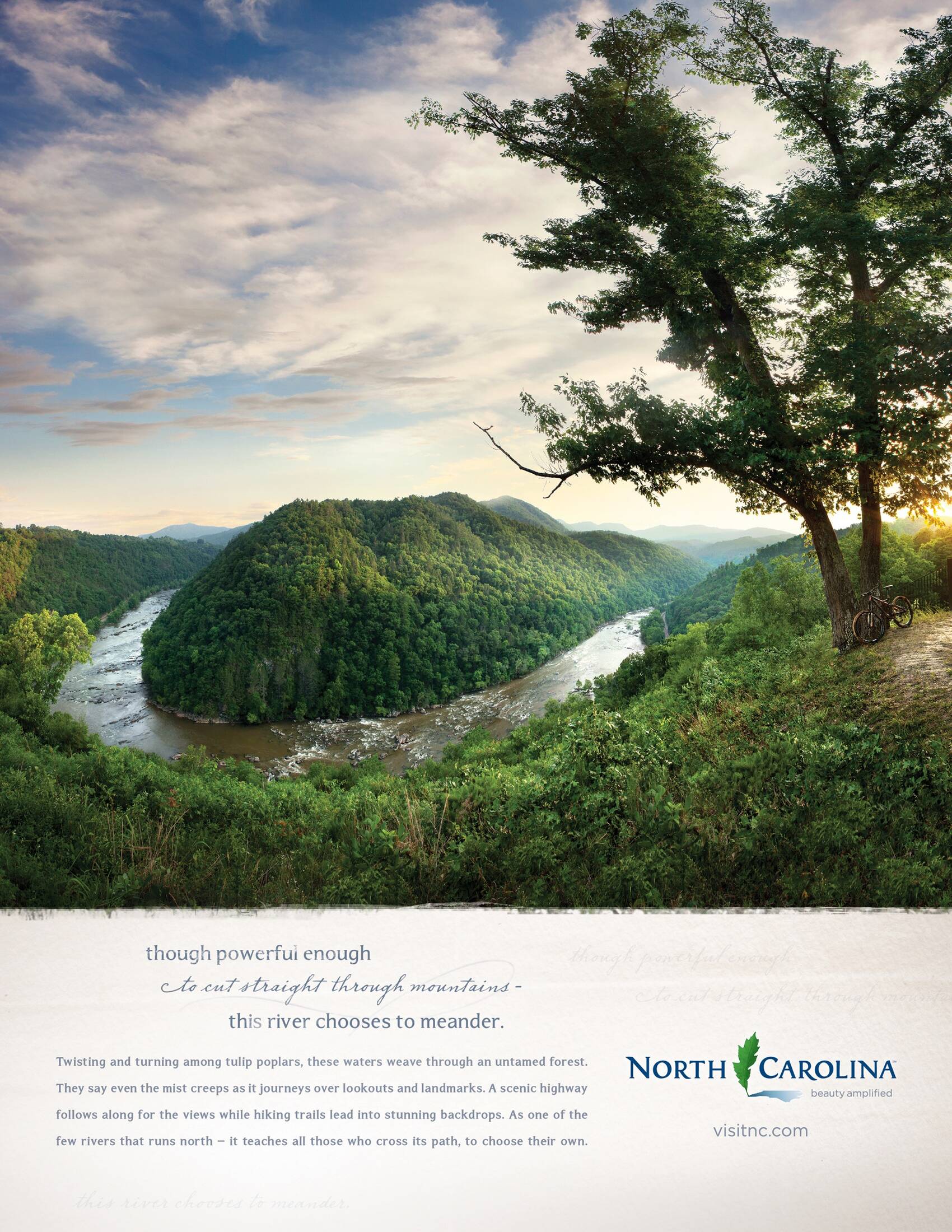 This professional campaign titled 'Beauty Amplified' was published in United States in February, 2015. It was created for the brand: Visit North Carolina, by ad agency: Luquire George Andrews. This Print medium campaign is related to the Transport industry and contains 3 media assets. It was submitted over 10 years ago.