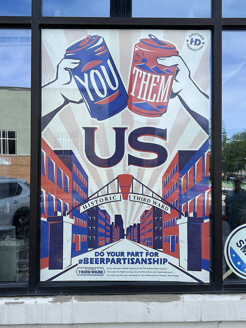 With Milwaukee hosting the RNC, the city’s Historic Third Ward (HTW), recognized as the #5 Best Art District according to USA Today’s 2024 “Best Reader’s Choice Awards,” launched a local advertising campaign to help draw attention to the district as an attractive tourist destination. Developed pro bono by Hanson Dodge, whose offices are located in the district, the campaign draws on the area’s beer notoriety and invites tourists and visitors to put aside their differences and engage in a little #Beerpartisanship fun. Advertising includes posters, window displays, and a #Beerpartisanship card game in which players were filmed and videos shared on Instagram and other HTW social media outlets. Of course, players who agreed on answers were each rewarded with a free cold beer.