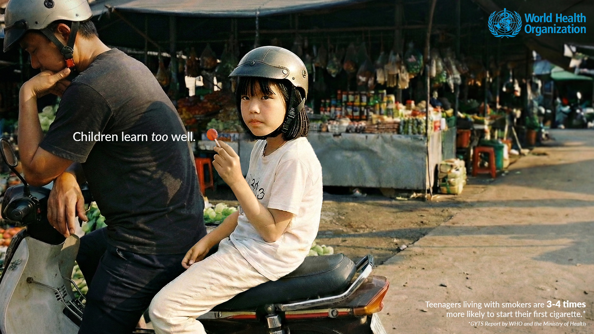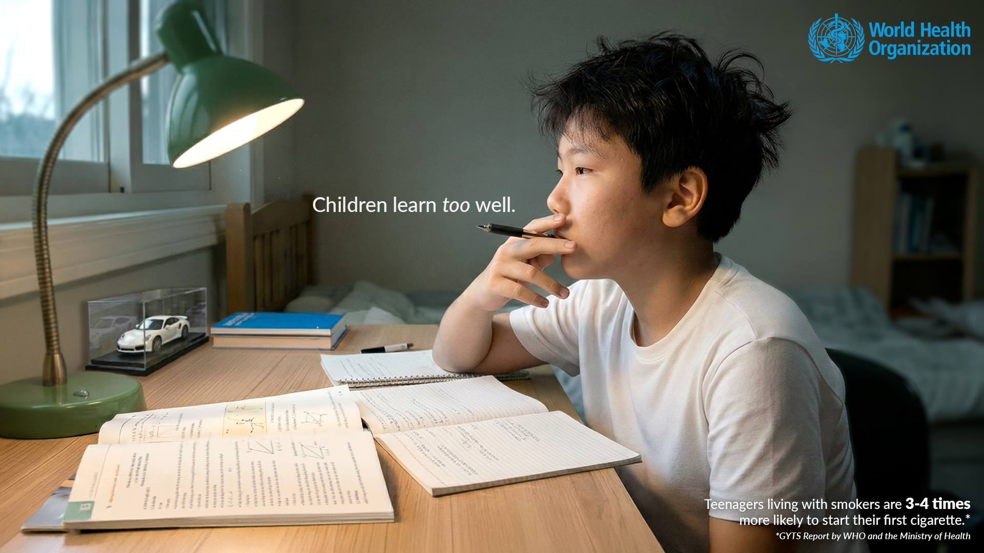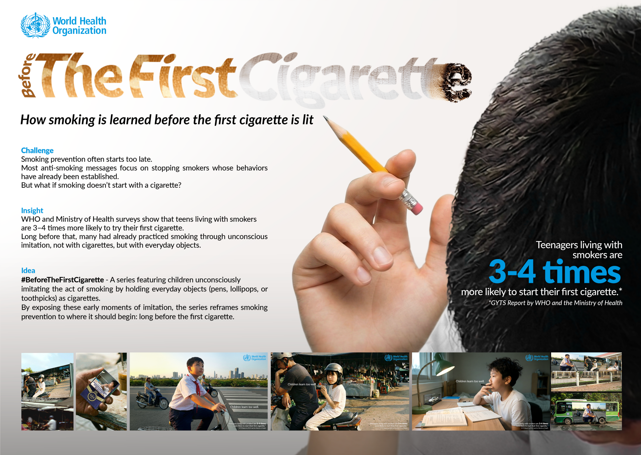 By portraying children unknowingly mimicking smokers using everyday objects, the series reframes smoking prevention to where it truly begins: long before the first cigarette.
