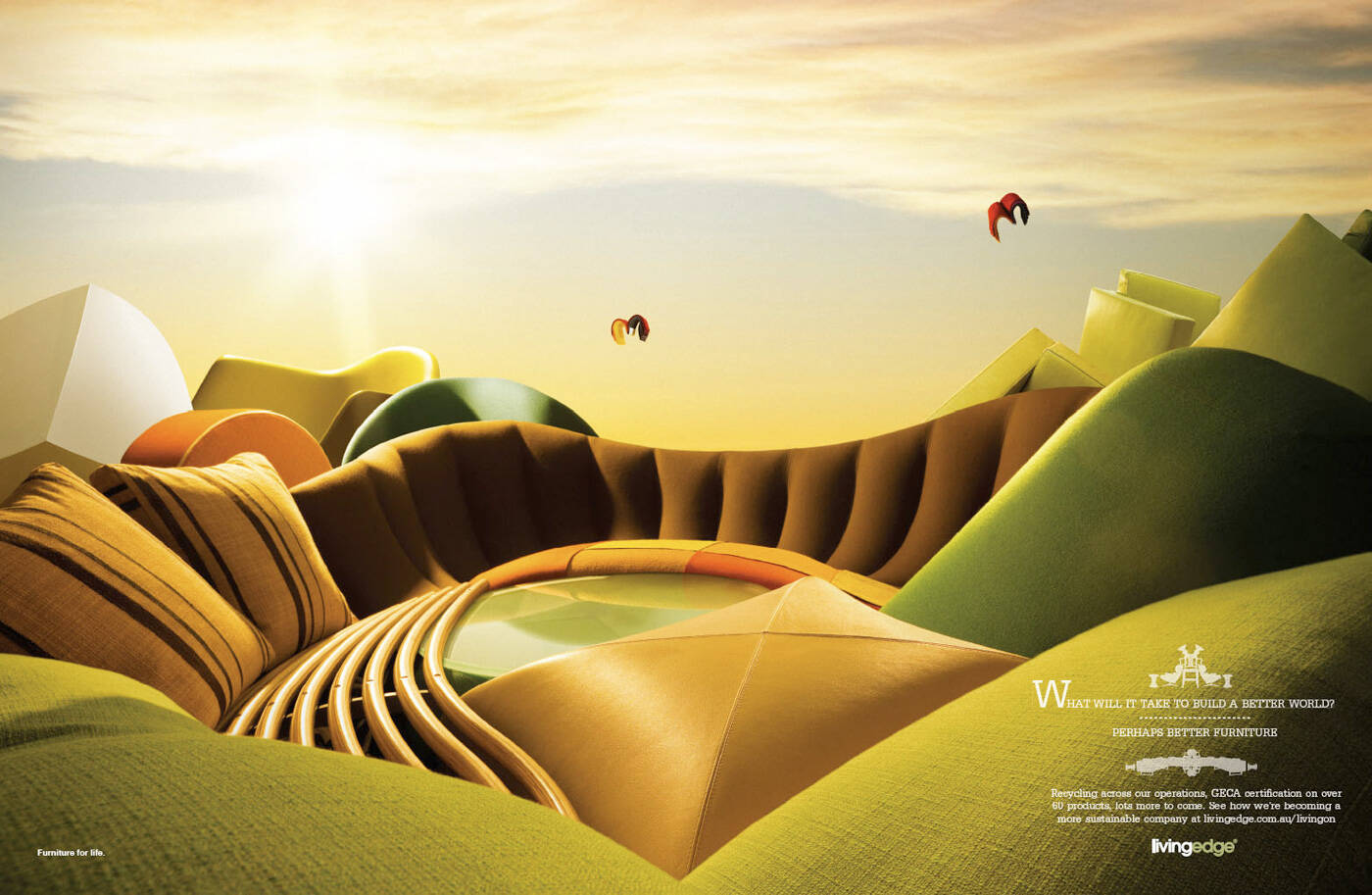 This professional campaign titled 'Better world' was published in Australia in March, 2009. It was created for the brand: Living Edge, by ad agency: Republic of Everyone. This Print medium campaign is related to the House, Garden industry and contains 2 media assets. It was submitted over 16 years ago.