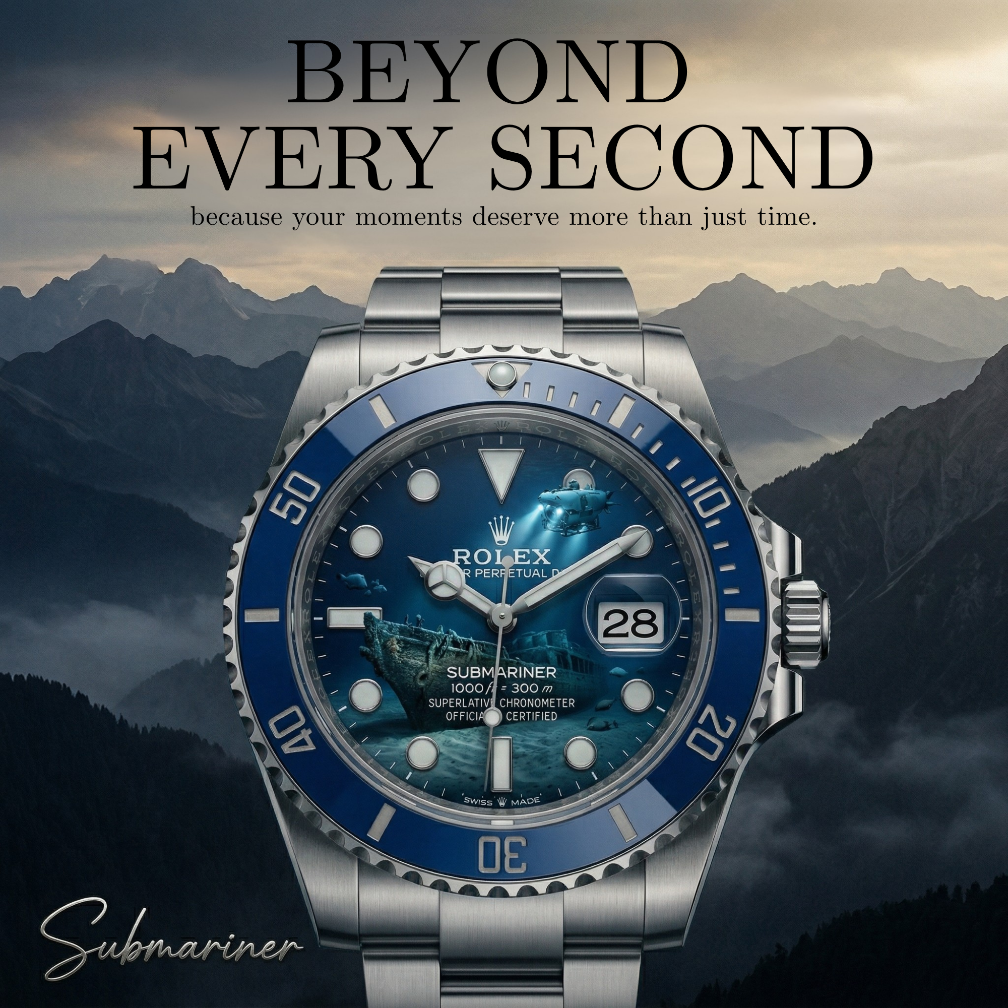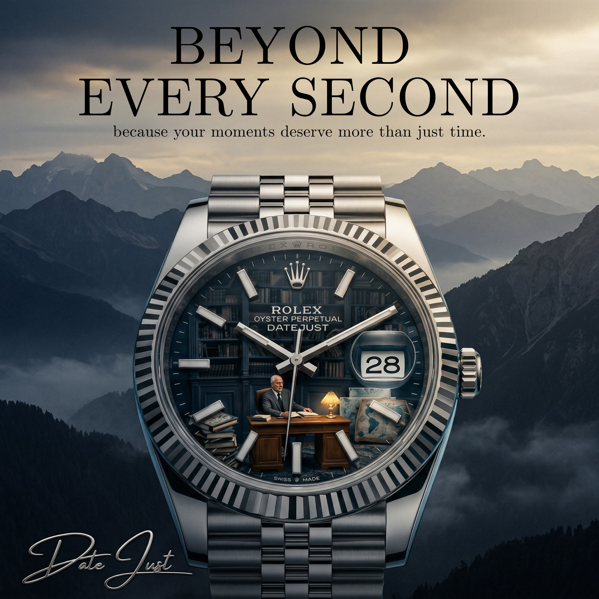 “Beyond Every Second” is a conceptual campaign for Rolex that transforms each timepiece into a narrative space.