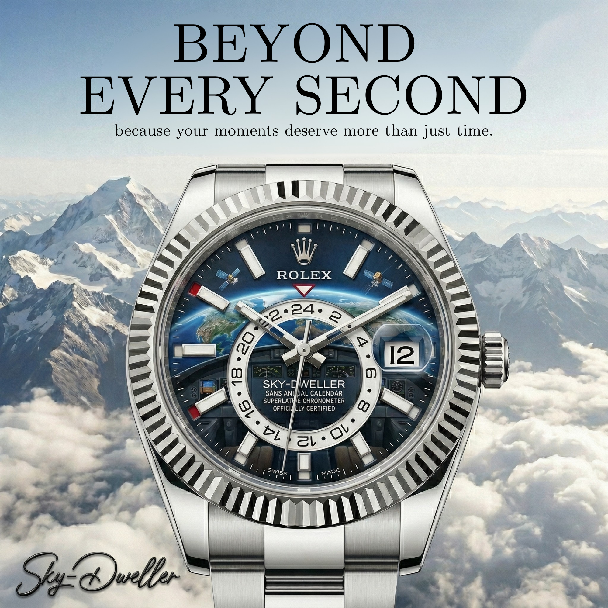The Rolex Sky-Dweller evolves into a dynamic sky, representing global movement and time across borders.