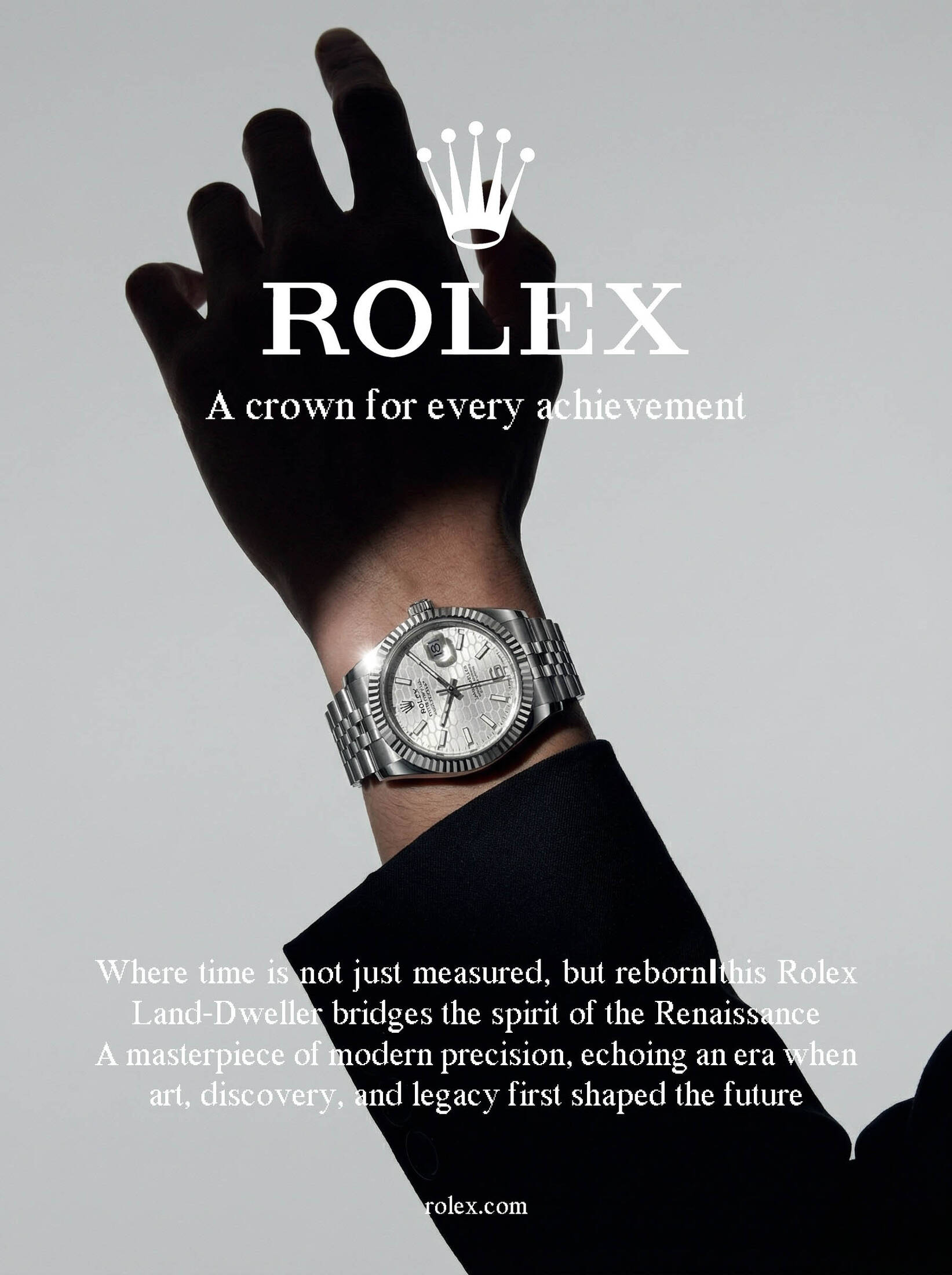 Rather than focusing solely on the product, the campaign elevates the emotional value of owning a Rolex. It positions the watch as a silent statement — one that speaks of discipline, taste, and accomplishment without the need for words.