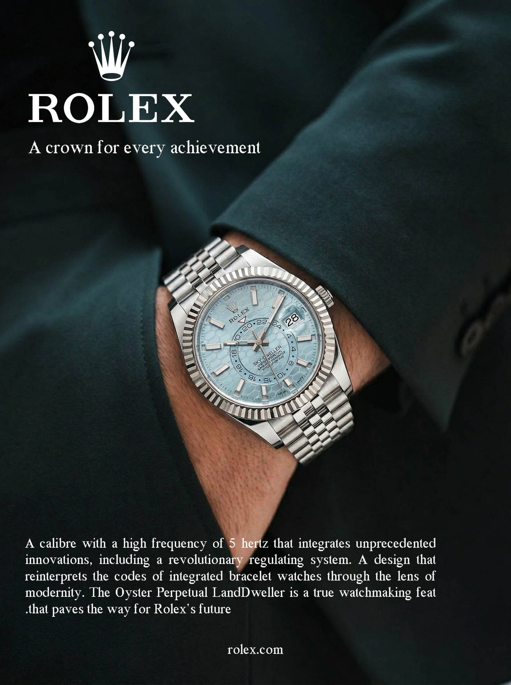 Inspired by Rolex’s iconic communication style, the visuals place the watch within refined, cinematic everyday moments — from quiet elegance in a café to powerful expressions of success and confidence. Each scene reflects a different interpretation of time: time to reflect, time to lead, and time to arrive.
