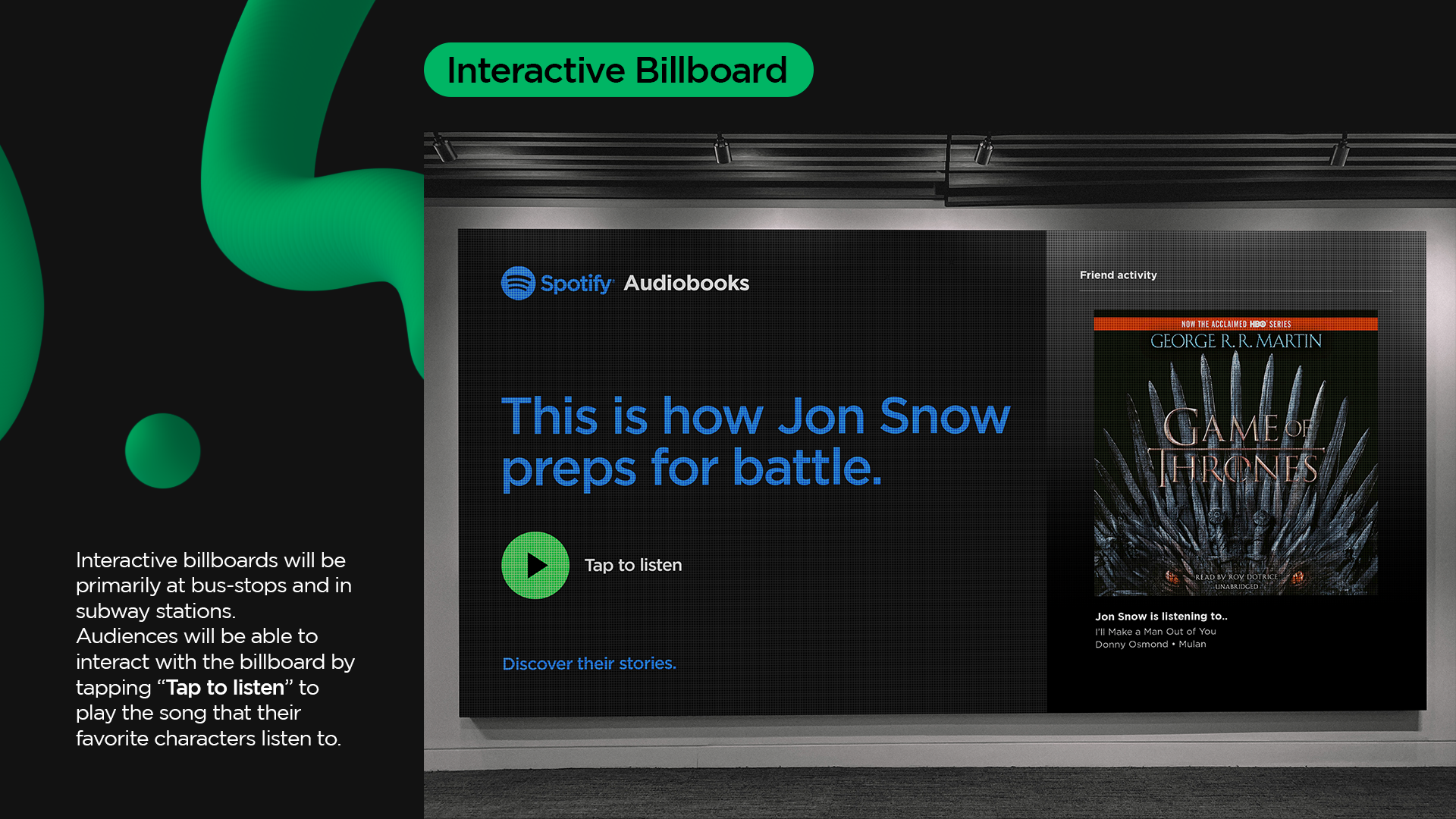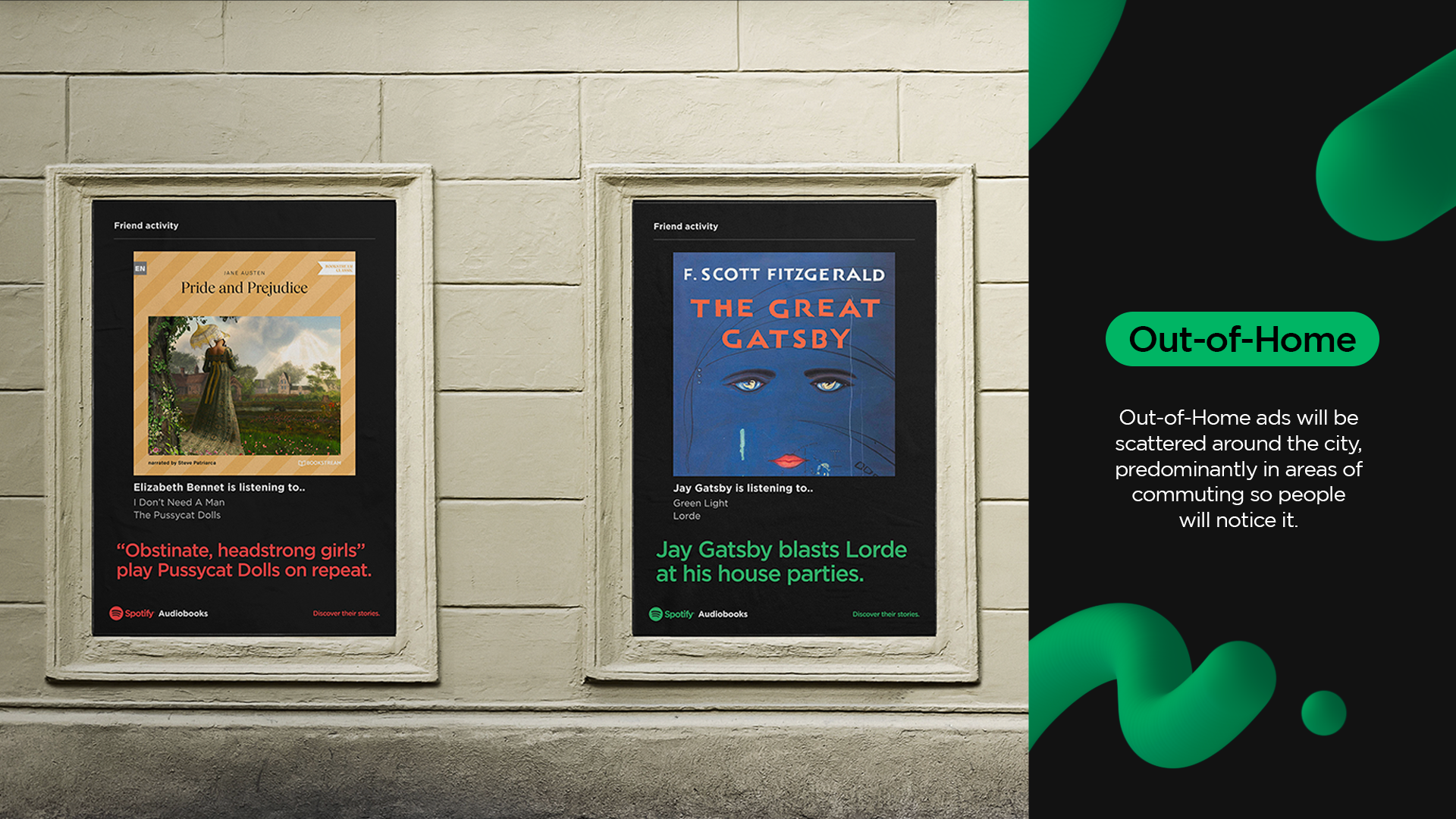 When you relate to a character you feel like they are a good friend. So we decided to use famous characters and beloved songs to make people aware of the new audiobook feature on Spotify.