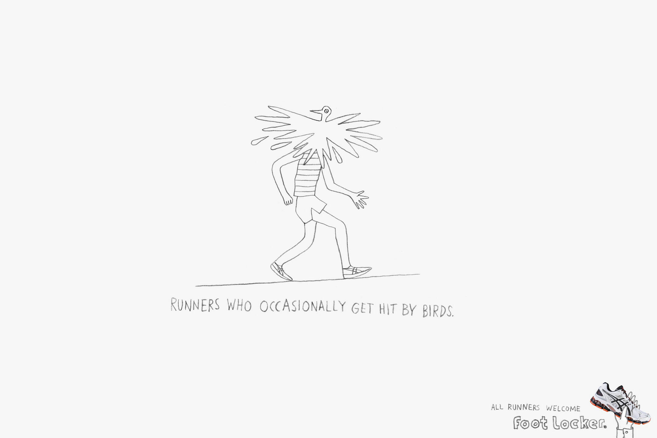 This professional campaign titled 'Bird, Mud, Silly, Beard, Close, Costumes' was published in United States in June, 2014. It was created for the brand: Foot Locker, by ad agency: BBDO. This Print medium campaign is related to the Retail Services industry and contains 6 media assets. It was submitted over 11 years ago.