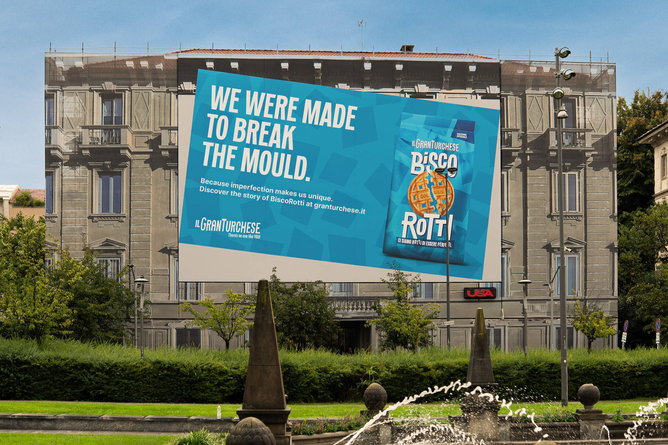 This professional campaign titled 'Bisco Rotti' was published in Italy in September, 2025. It was created for the brand: GranTurchese, by ad agency: Dude Milano. This OOH Outdoor medium campaign is related to the Food industry and contains 1 media asset. It was submitted 3 months ago by Brooks: Zoe.
