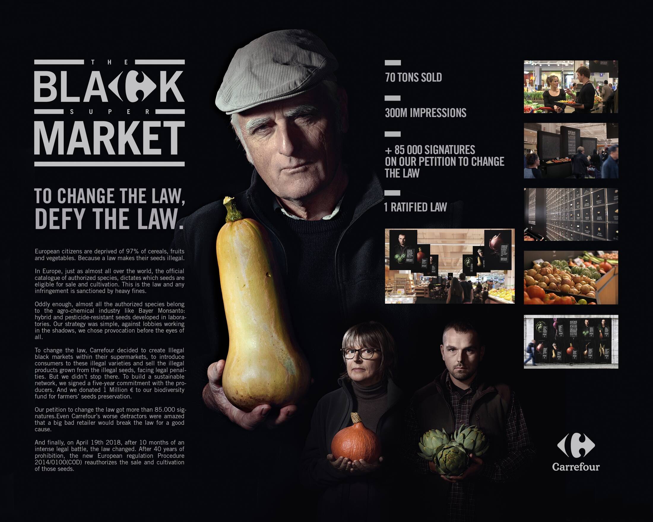 This professional campaign titled 'Black Supermarket' was published in France in September, 2017. It was created for the brand: Carrefour, by ad agency: Publicis. This OOH Outdoor medium campaign is related to the Retail Services industry and contains 2 media assets. It was submitted about 7 years ago.