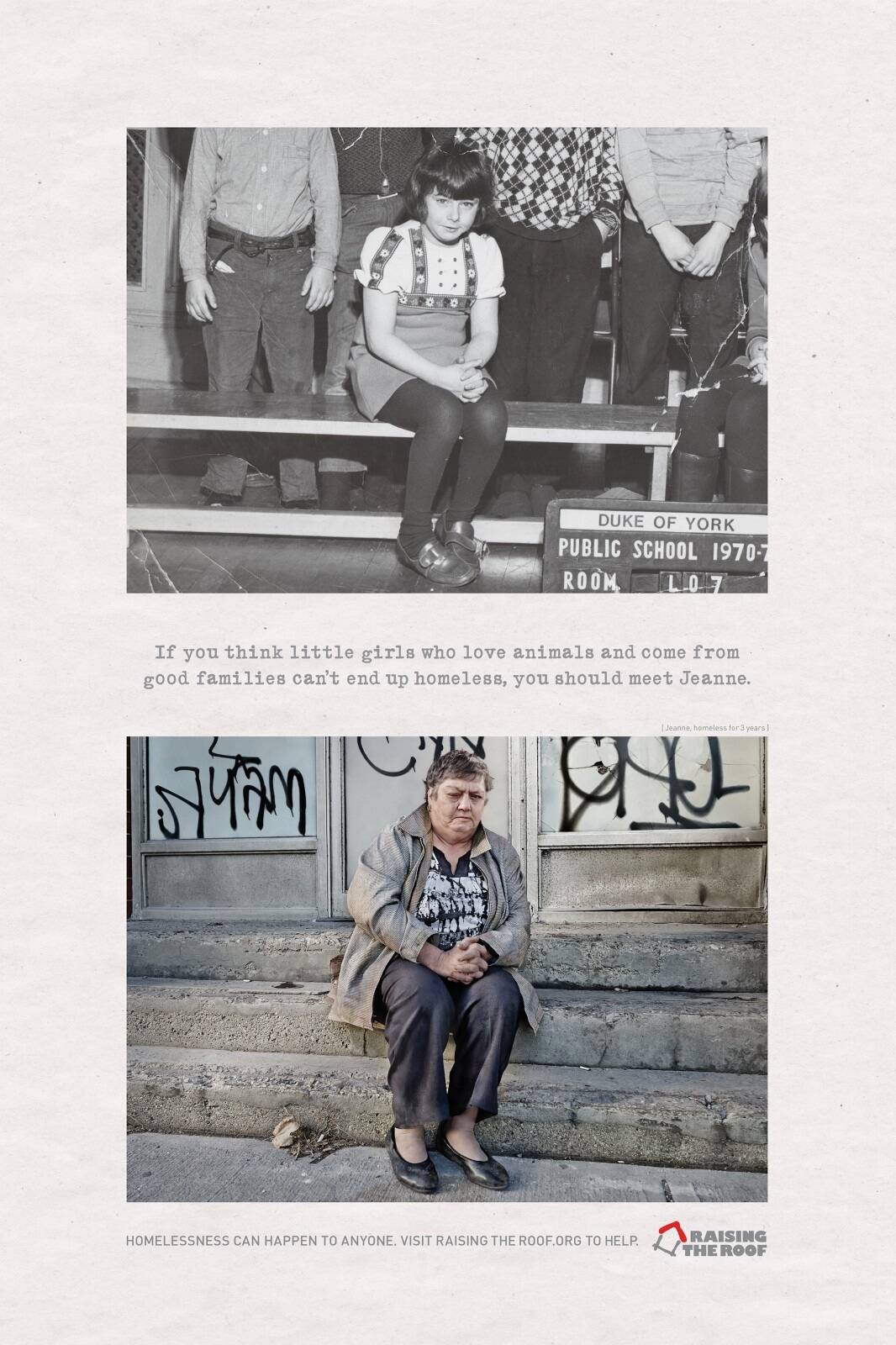 This professional campaign titled 'Blake, Jeanne, Dave' was published in Canada in October, 2014. It was created for the brand: Raising The Roof, by ad agency: Leo Burnett. This OOH Outdoor medium campaign is related to the Public Interest industry and contains 3 media assets. It was submitted about 11 years ago.