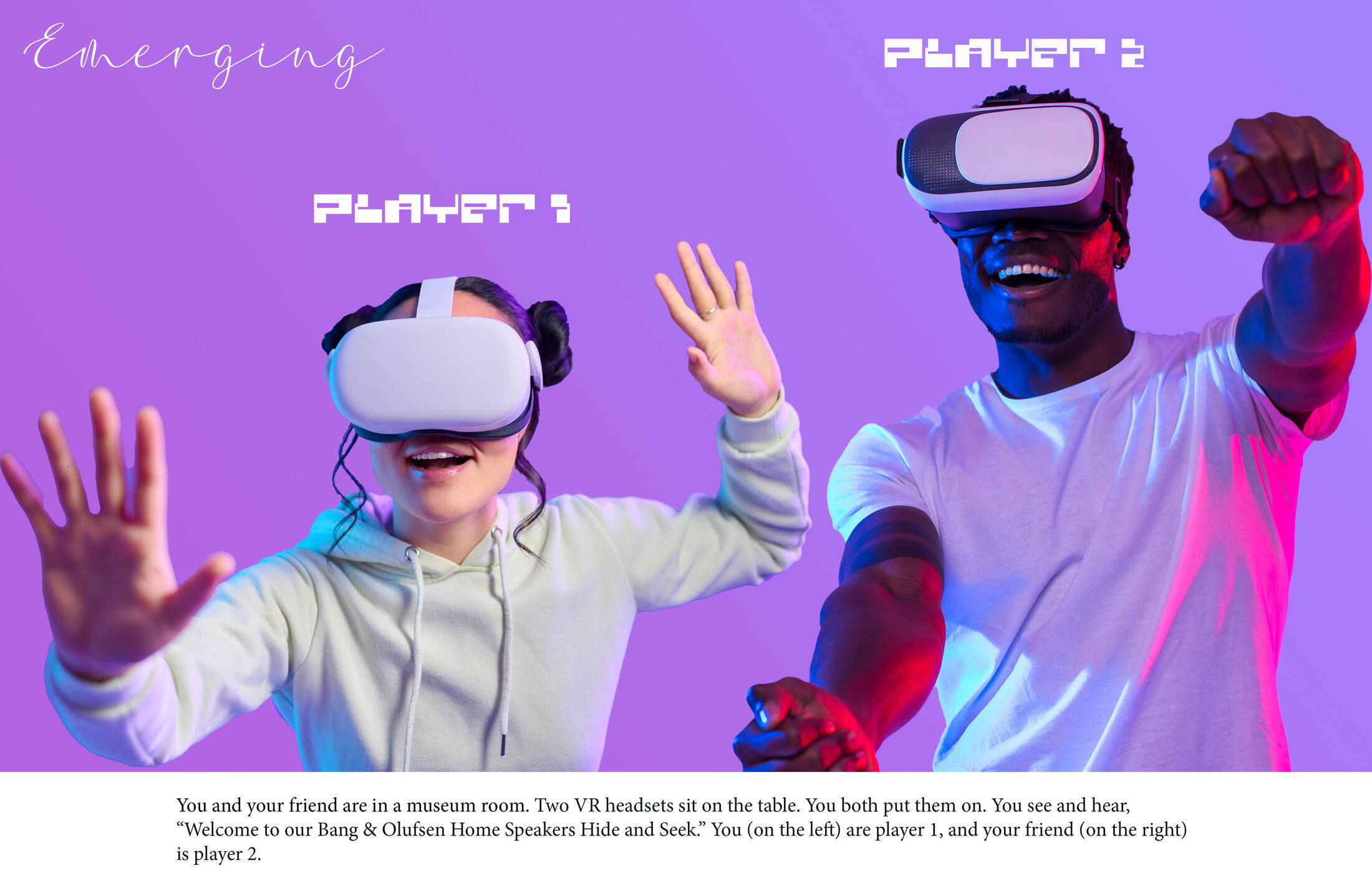 Emerging Tech Execution: To demonstrate how Bang & Olufsen Home Speakers blend seamlessly into any design style, we created a VR game. It is set in a museum where you can compete with a friend. You can choose your preferred interior design style, such as “pop art.” Player 1 is tasked with hiding five B&O speakers within a well designed room. And then Player 2 is tasked with finding them, which is going to be very difficult.
