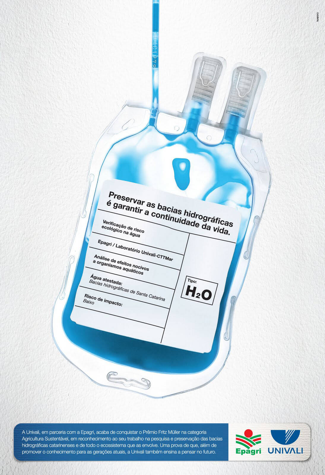This professional campaign titled 'Blood bag' was published in Brazil in August, 2009. It was created for the brand: Univali, by ad agency: Kaapora. This Print medium campaign is related to the Public Interest industry and contains 1 media asset. It was submitted about 16 years ago.