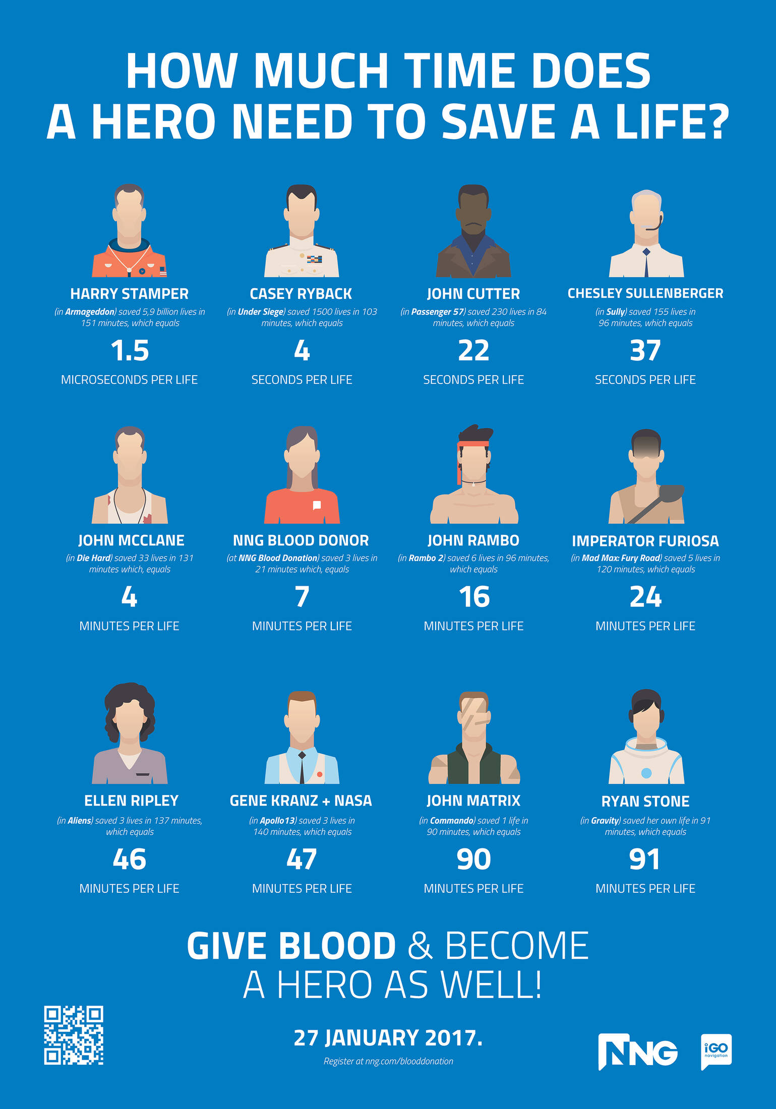 We wanted to show our colleagues that if they donate blood, they can do better than Rambo. Therefore, we made this infographic poster.