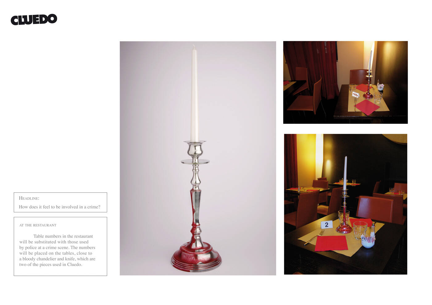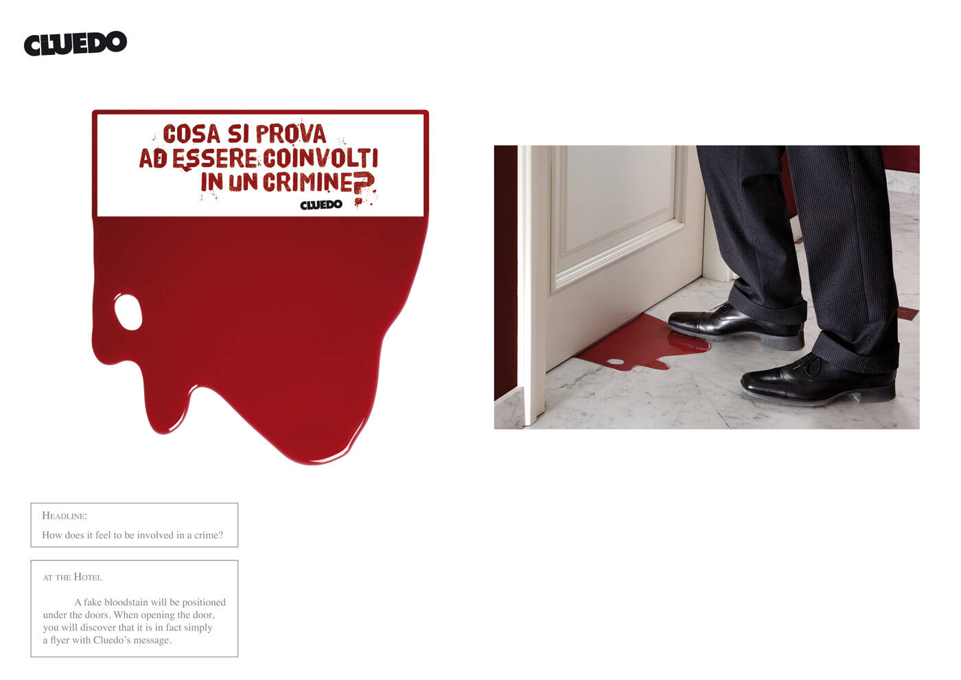 This professional campaign titled 'Blood under the door, Knife, Candle holder' was published in Italy in October, 2009. It was created for the brand: Cluedo, by ad agency: DDB. This Print medium campaign is related to the Gaming industry and contains 3 media assets. It was submitted about 16 years ago.