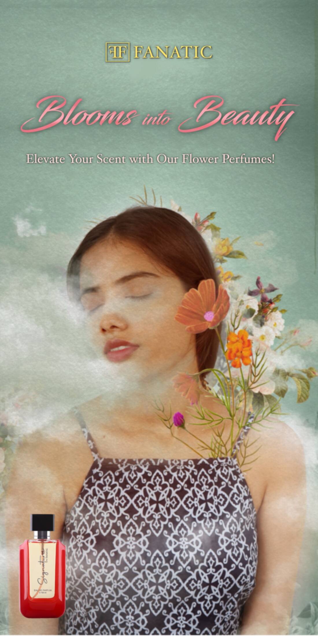 An iconic, old-world standing family business, Fanatic, which has been creating scents since 1986 and is coming to be a rather familiar name in the fragrance world. The primary objective has been creating the products of the best possible quality that could be easily distinguished by the consumer. We've done a good job! Our perfumes are considered one of the most elite in the market, as they have top class quality, luxury and elegance in them - with fragrances. What we care about the most is our fan stuff, called Fanatic which we established in 2015. This is the beautiful fact of its birth, since then.Our aim? The company will aim to compete with top players in the skincare industry by making Fanatic a popular brand sold across the nation and even outside of the country.This campaign encapsulates the idea that our flower perfumes do more than just scent the air—they elevate your entire being, allowing you to bloom into your own unique beauty. It encourages customers to embrace the magic of nature and express themselves through the captivating scents we offer. The visual features a young Lady stepping gracefully into a vibrant, dreamlike world filled with colorful flower blooms. As she walks through this enchanting landscape, the flowers seem to come alive, swirling around her, symbolizing the transformative power of our floral fragrances.