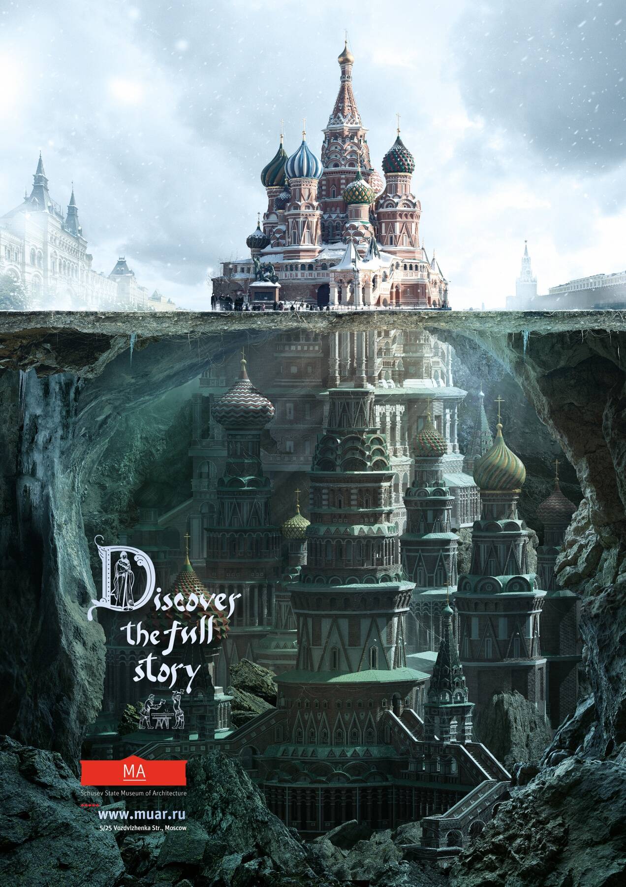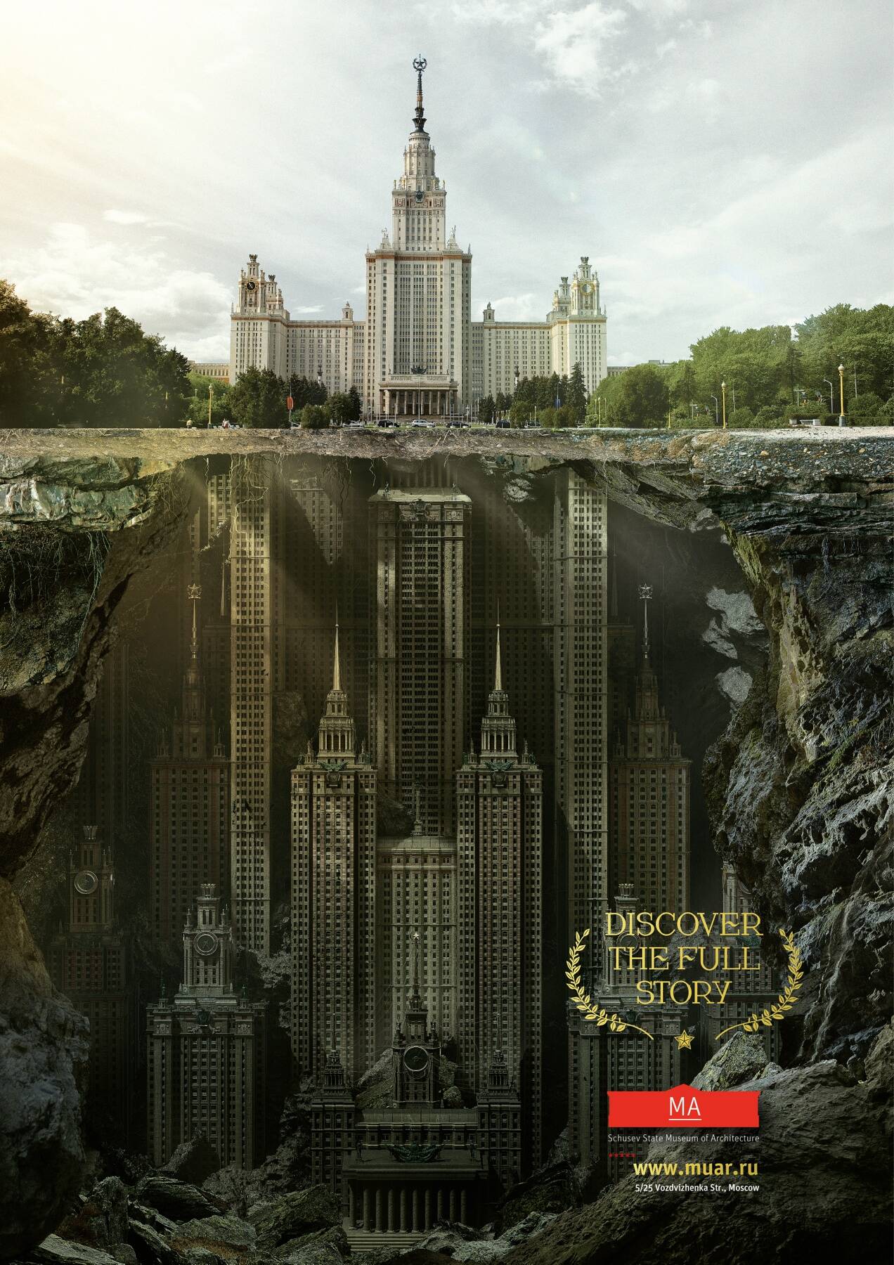 This professional campaign titled 'Bolshoi Theatre, Saint Basil's Cathedral, Lomonosov Mosco...' was published in Russia in April, 2013. It was created for the brand: Schusev State Museum of Architecture, by ad agency: Saatchi & Saatchi. This Print medium campaign is related to the Recreation, Leisure industry and contains 3 media assets. It was submitted over 12 years ago.