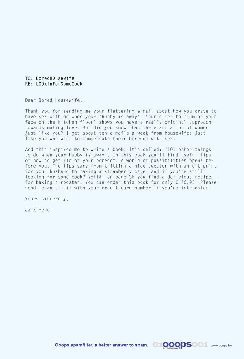 This professional campaign titled 'Bored housewife' was published on January 01, 2008. This Print medium campaign is related to the Professional Services industry and contains 1 media asset. It was submitted almost 18 years ago.
