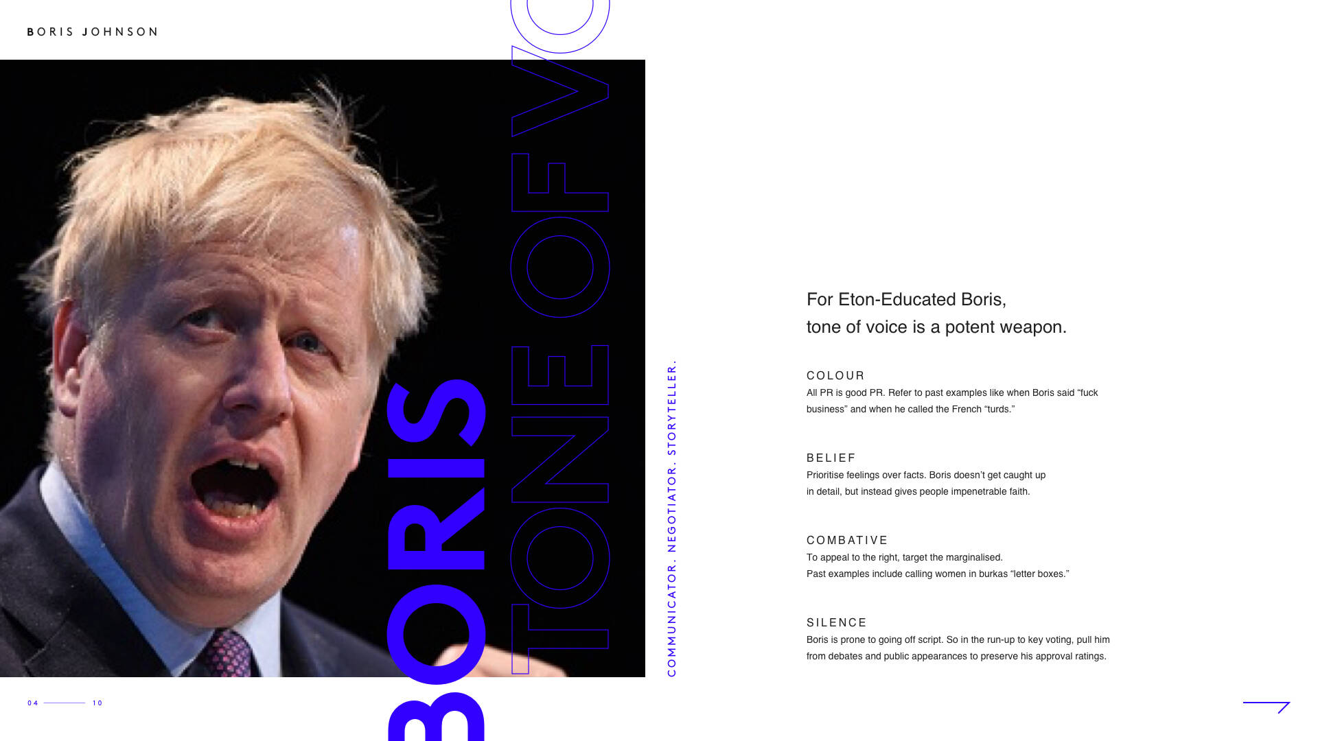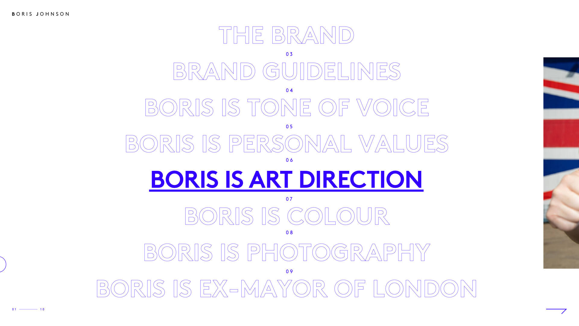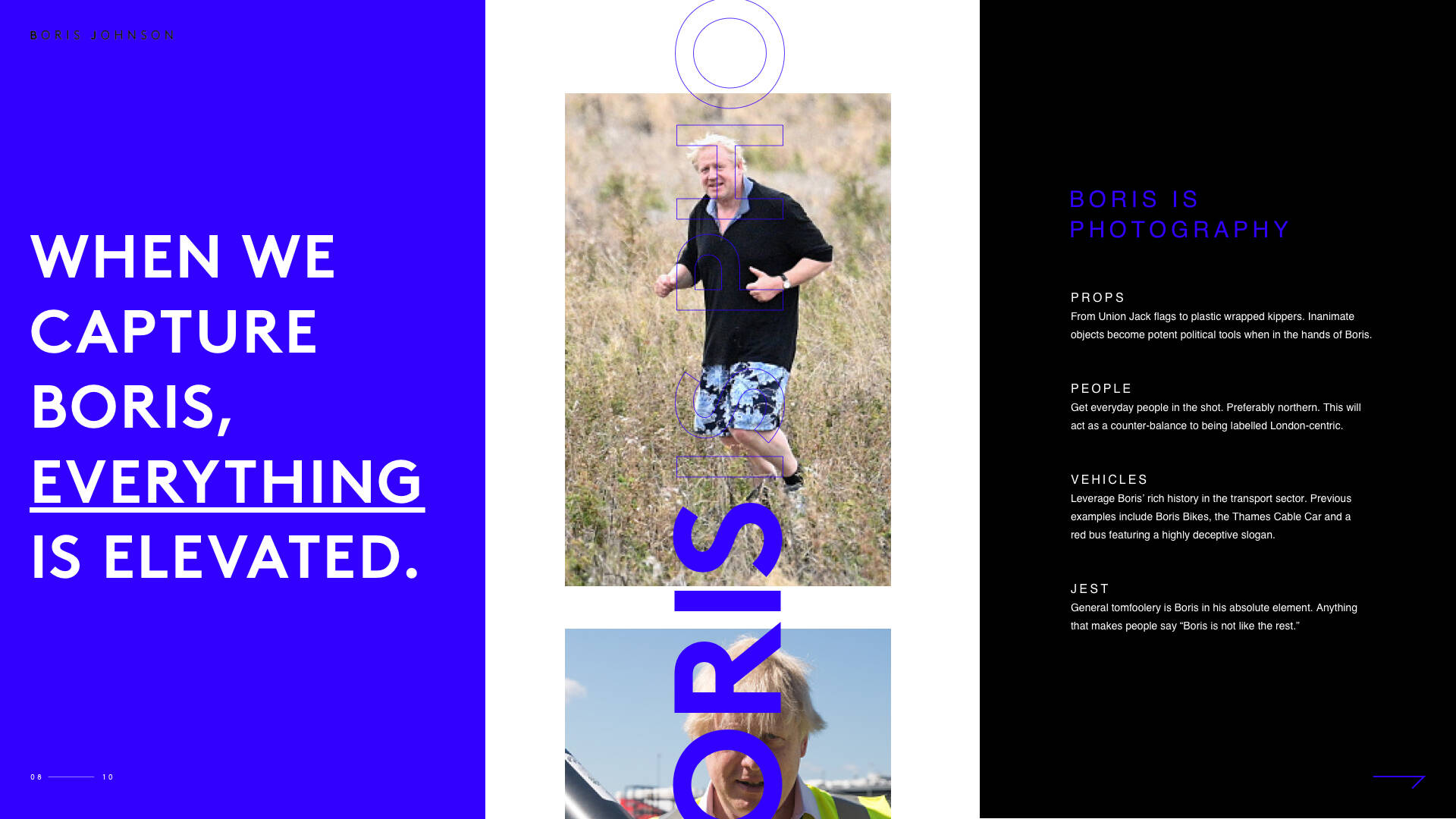 This professional campaign titled 'Boris. The Brand.' was published in United Kingdom in July, 2019. It was created for the brand: Boris Johnson, by ad agency: Huge. This Design medium campaign is related to the Agency Self-Promo industry and contains 11 media assets. It was submitted over 6 years ago by Creative Director: Harinderpal of Huge London.