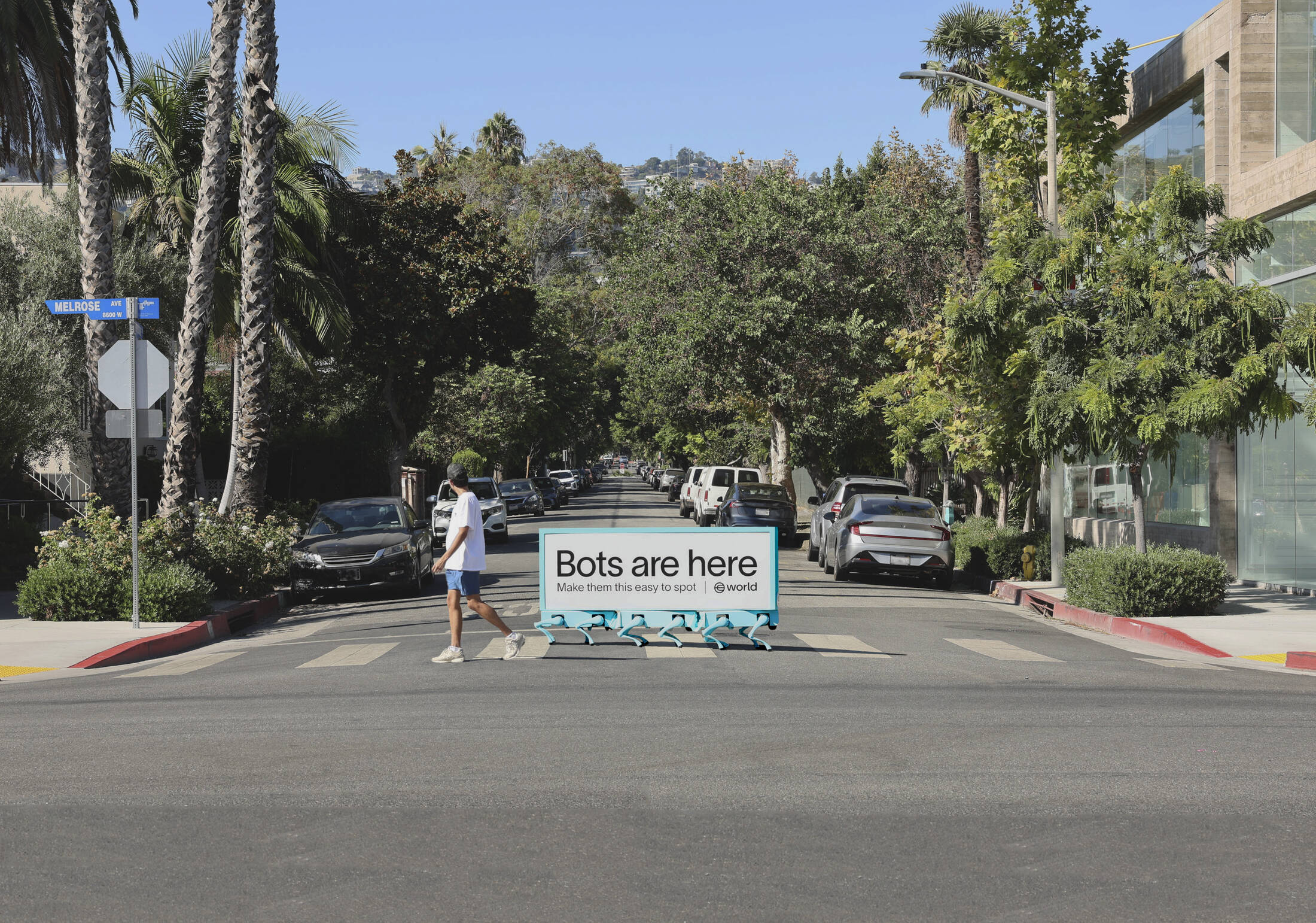 World released the first fully synchronized, three-robot billboard in Manhattan Beach, Los Angeles, on September 6 to promote the importance of proof of human for the age of AI. The message is simple: Bots are here — we need to make them easier to spot.