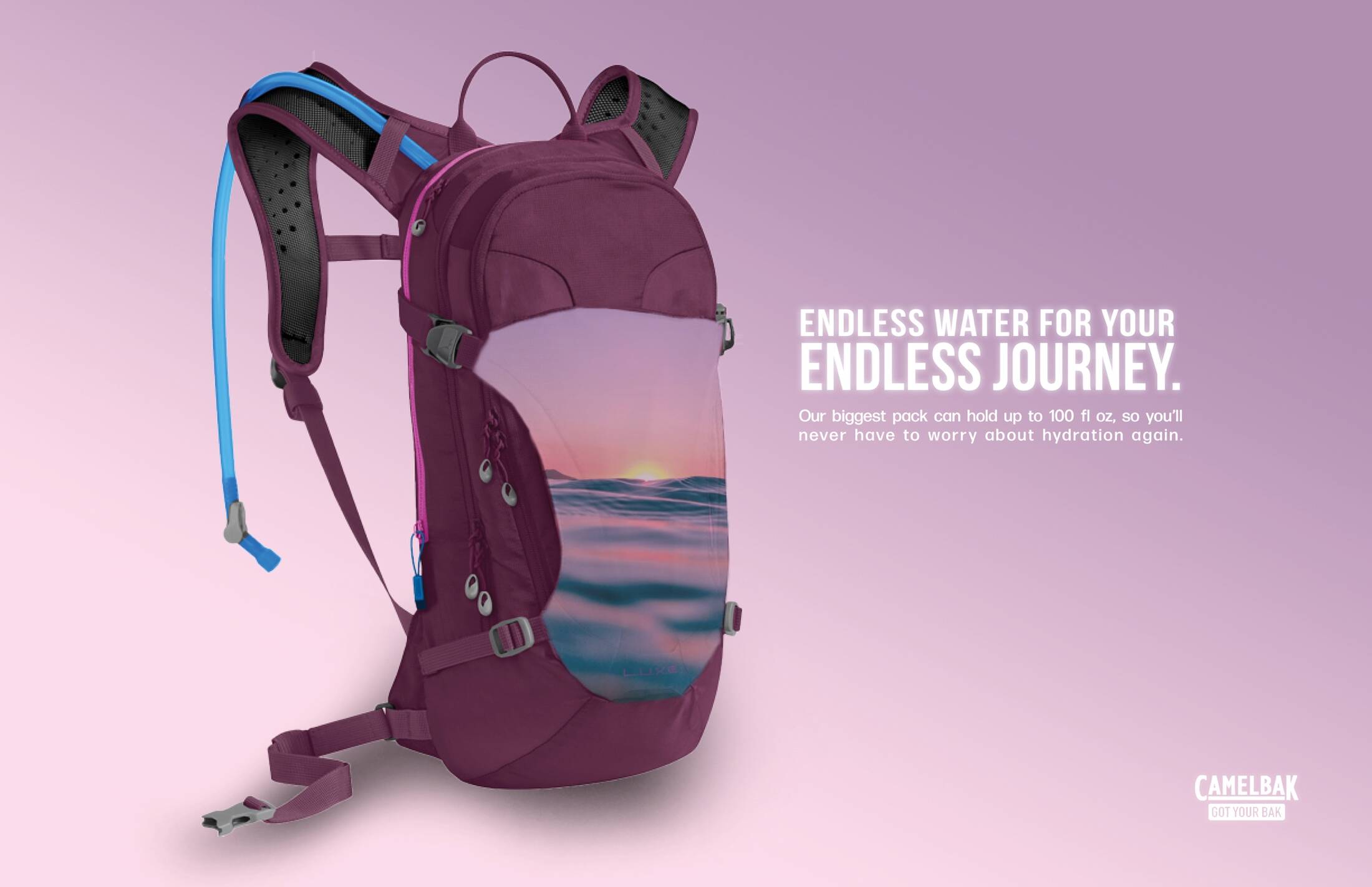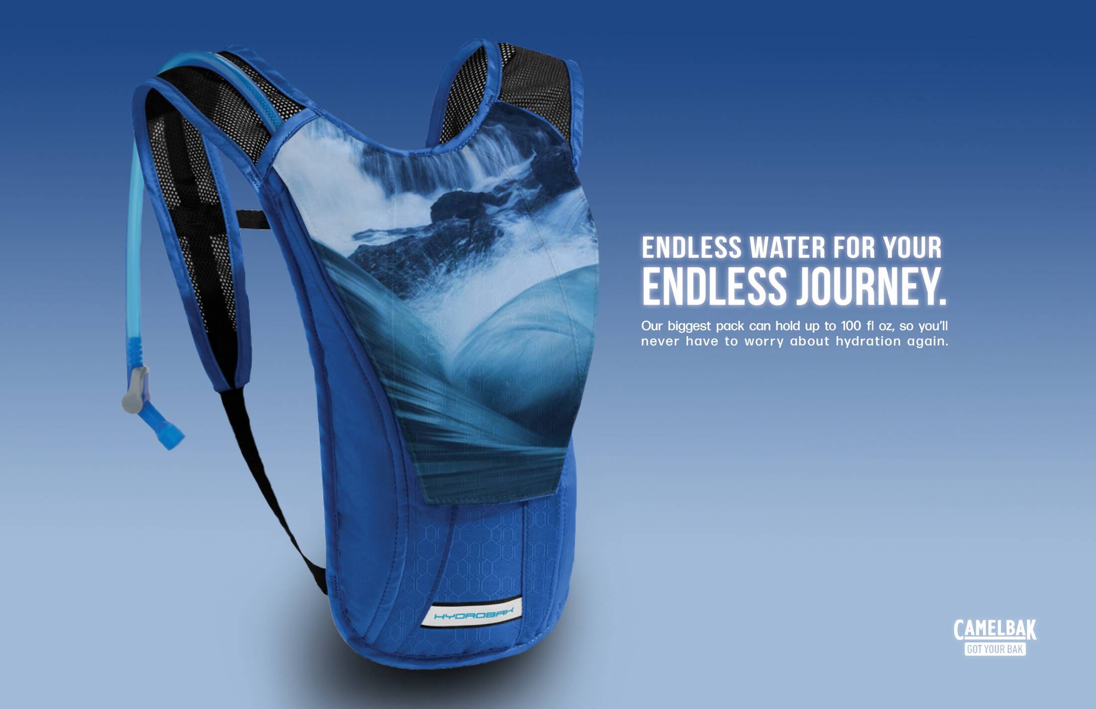 This student campaign titled 'Bountiful hydration' was published in United States in May, 2019. It was created for the brand: CamelBak, by ad school: S.I. Newhouse School of Public Communications. This Print medium campaign is related to the Personal Accessories industry and contains 3 media assets. It was submitted over 6 years ago.