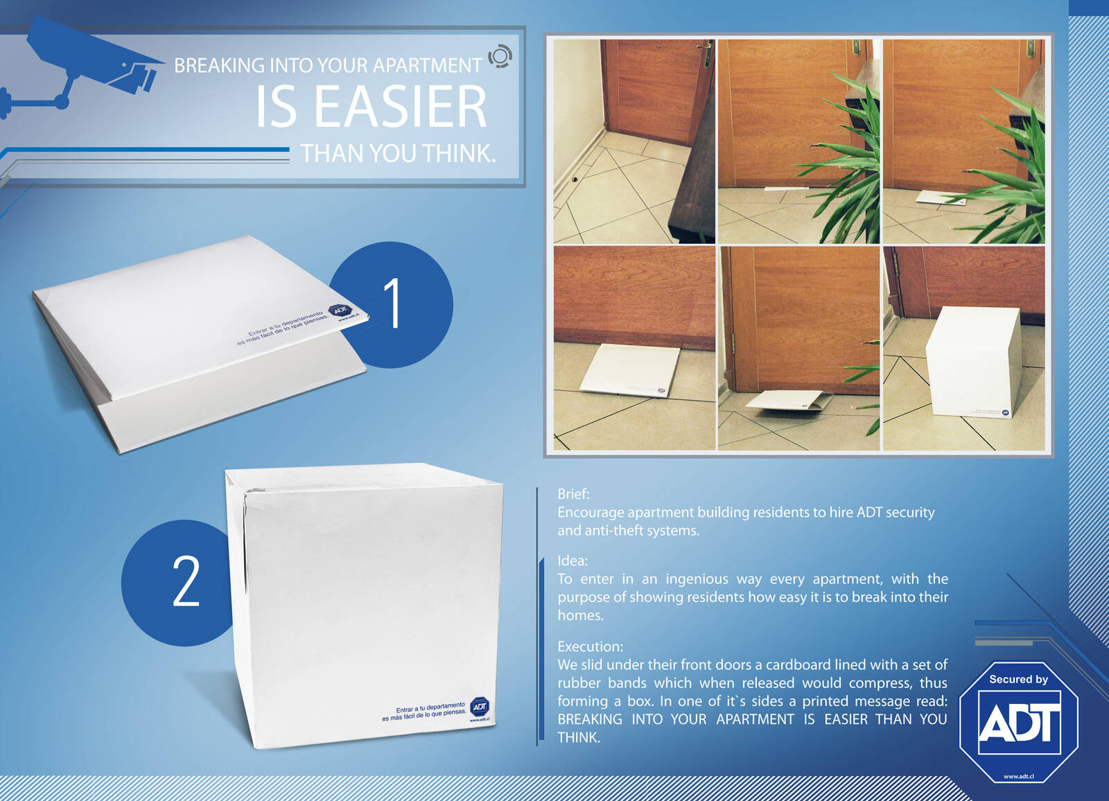 This professional campaign titled 'Box' was published in Chile in January, 2010. It was created for the brand: ADT, by ad agency: DDB. This Static Images medium campaign is related to the Professional Services industry and contains 1 media asset. It was submitted about 15 years ago.