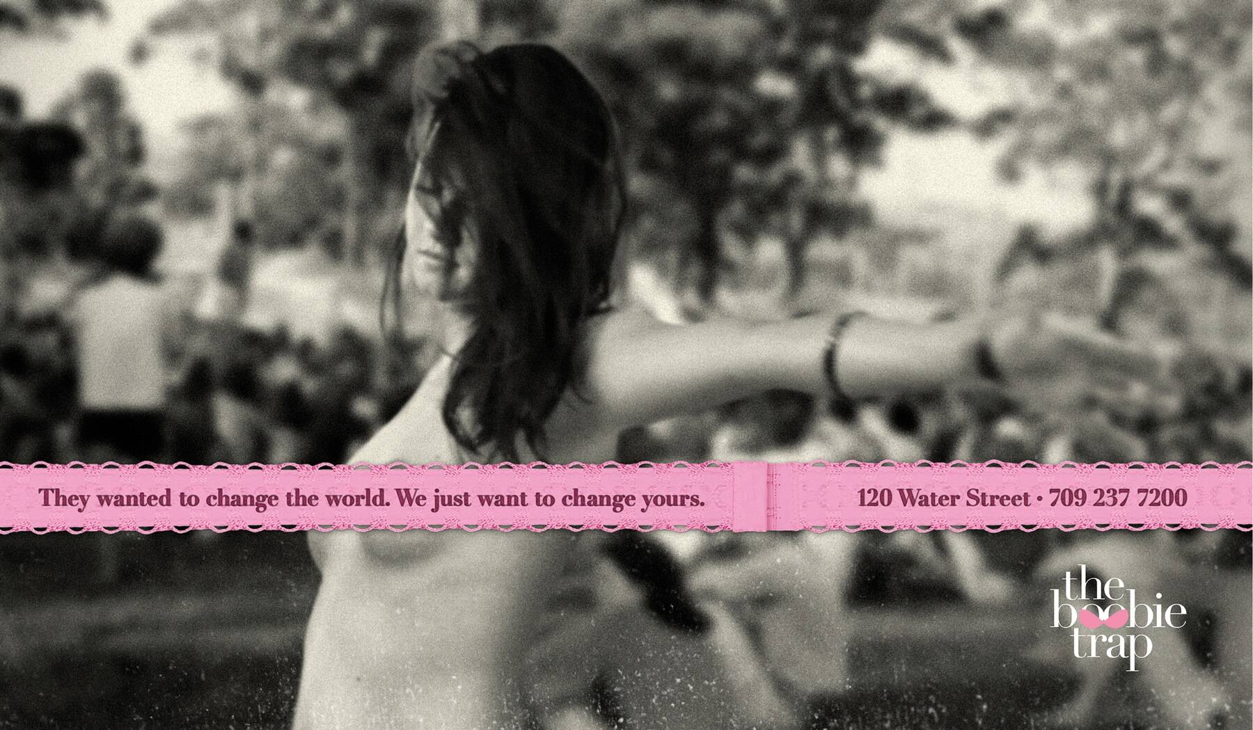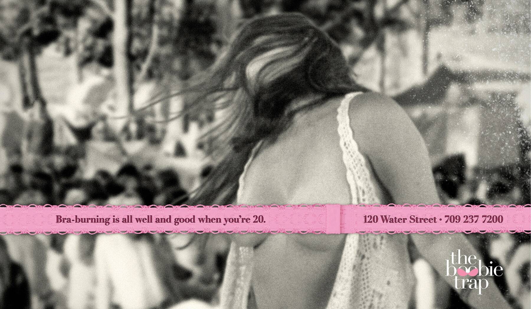 This professional campaign titled 'Bra-burning, Movement, Power in Numbers, Change the World' was published in Canada in December, 2012. It was created for the brand: The Boobie Trap, by ad agency: Target. This Print medium campaign is related to the Fashion industry and contains 4 media assets. It was submitted almost 13 years ago.