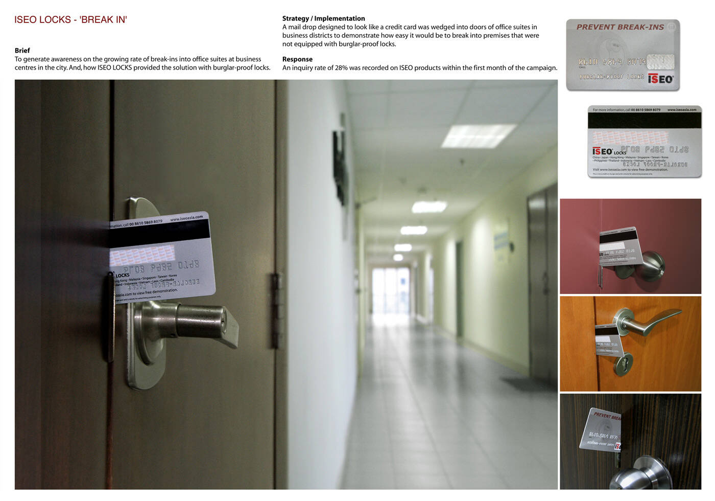 This professional campaign titled 'Break-in' was published on July 12, 2007. This Ambient medium campaign is related to the Industrial industry and contains 1 media asset. It was submitted over 18 years ago.
