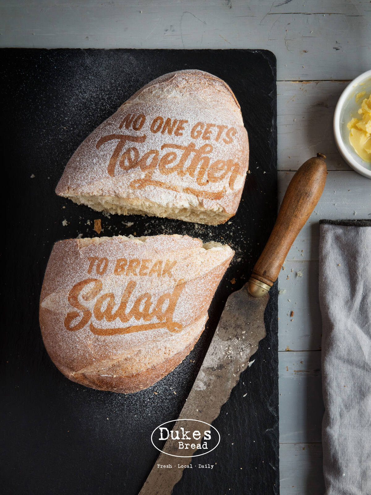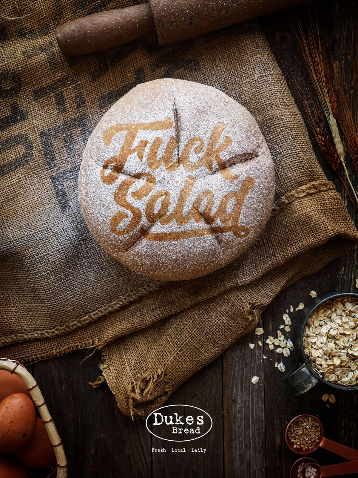 This professional campaign titled 'Break Salad, God Never Said, Gluten Free, Fuck Salad, Cut...' was published in United States in August, 2018. It was created for the brand: Dukes Bread, by ad agency: BooneOakley. This Print medium campaign is related to the Food industry and contains 5 media assets. It was submitted over 7 years ago.