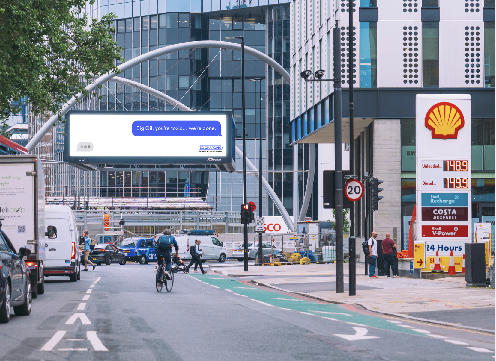 This OOH campaign challenges Big Oil, the world's largest publicly owned oil and gas companies, to accelerate the journey towards renewable energy and introduces the Mini Pro 3, EO Charging’s latest home vehicle charger. The creative campaign uses a text message look and feel to reflect a conversation with Big Oil, letting them know ‘our relationship is over.’ Another execution reminds people that EO Charging is power you can trust, unlike Big Oil.