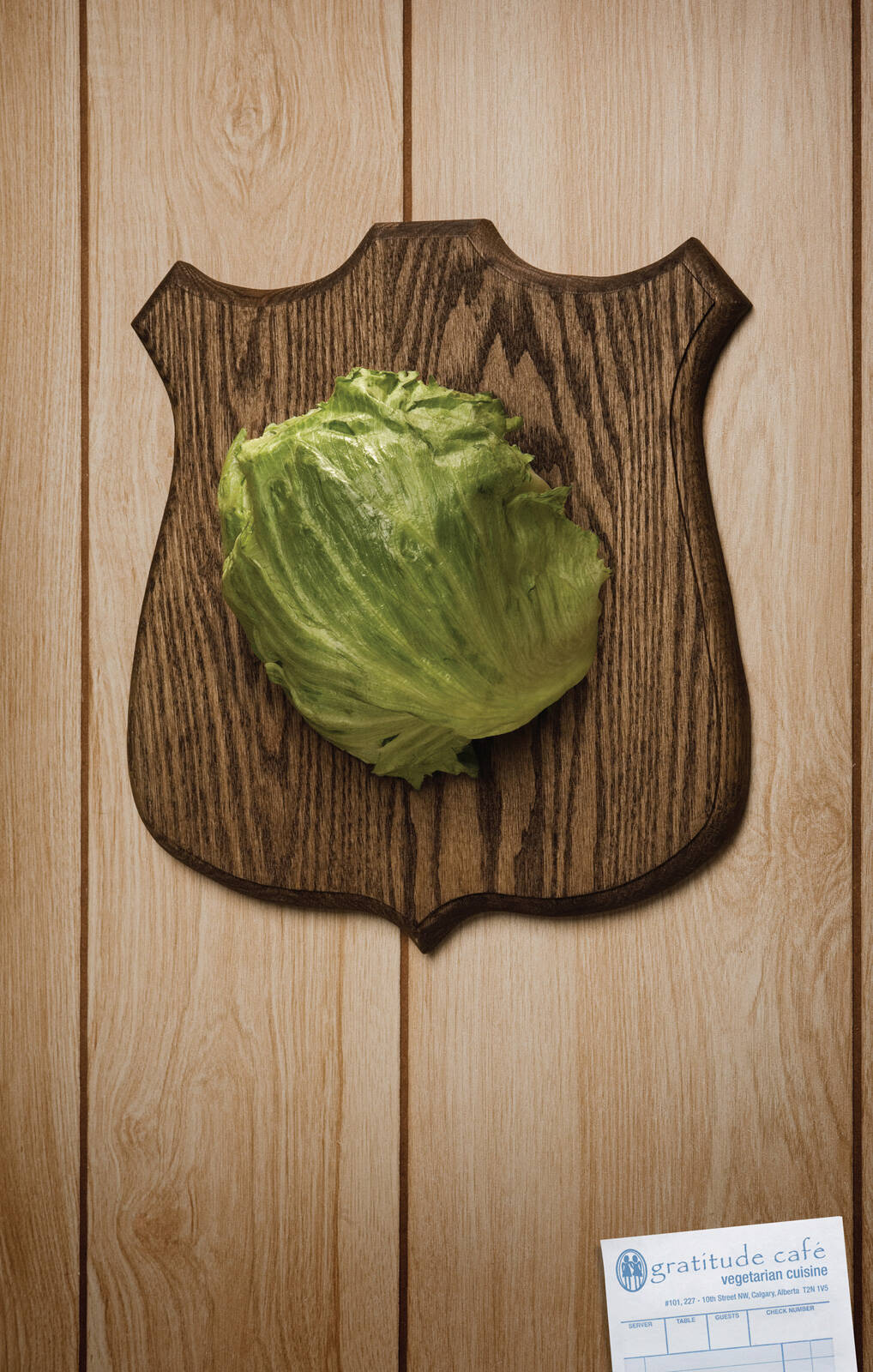 This professional campaign titled 'Broccoli, Garlic, Lettuce' was published in Canada in January, 2010. It was created for the brand: Gratitude Cafe, by ad agency: Wax. This Print medium campaign is related to the Food industry and contains 3 media assets. It was submitted about 15 years ago.