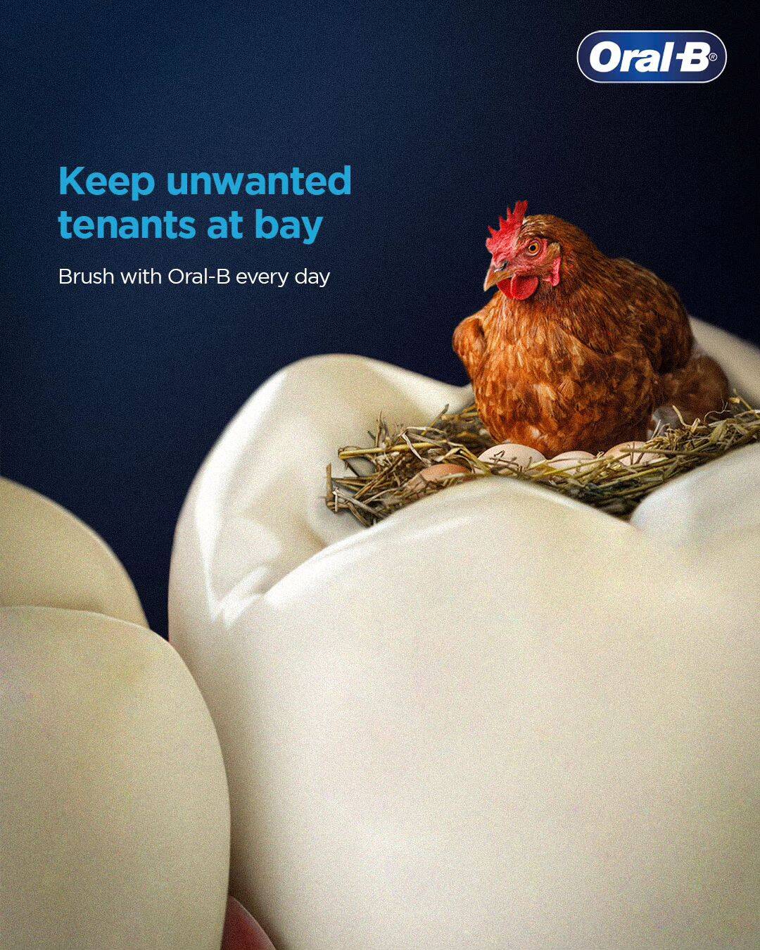 This witty creative uses a quirky visual and a playful message to remind everyone: brush away those unwanted tenants with Oral-B and keep your smile squeaky clean and plaque-free.