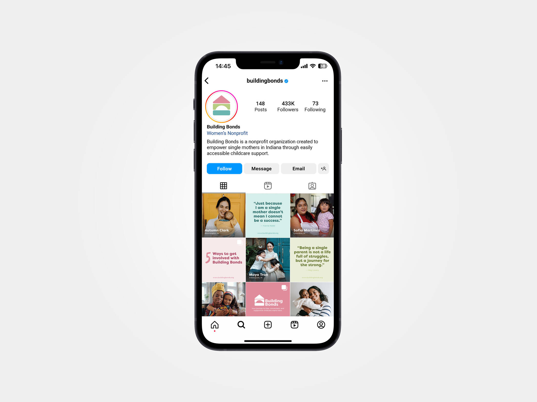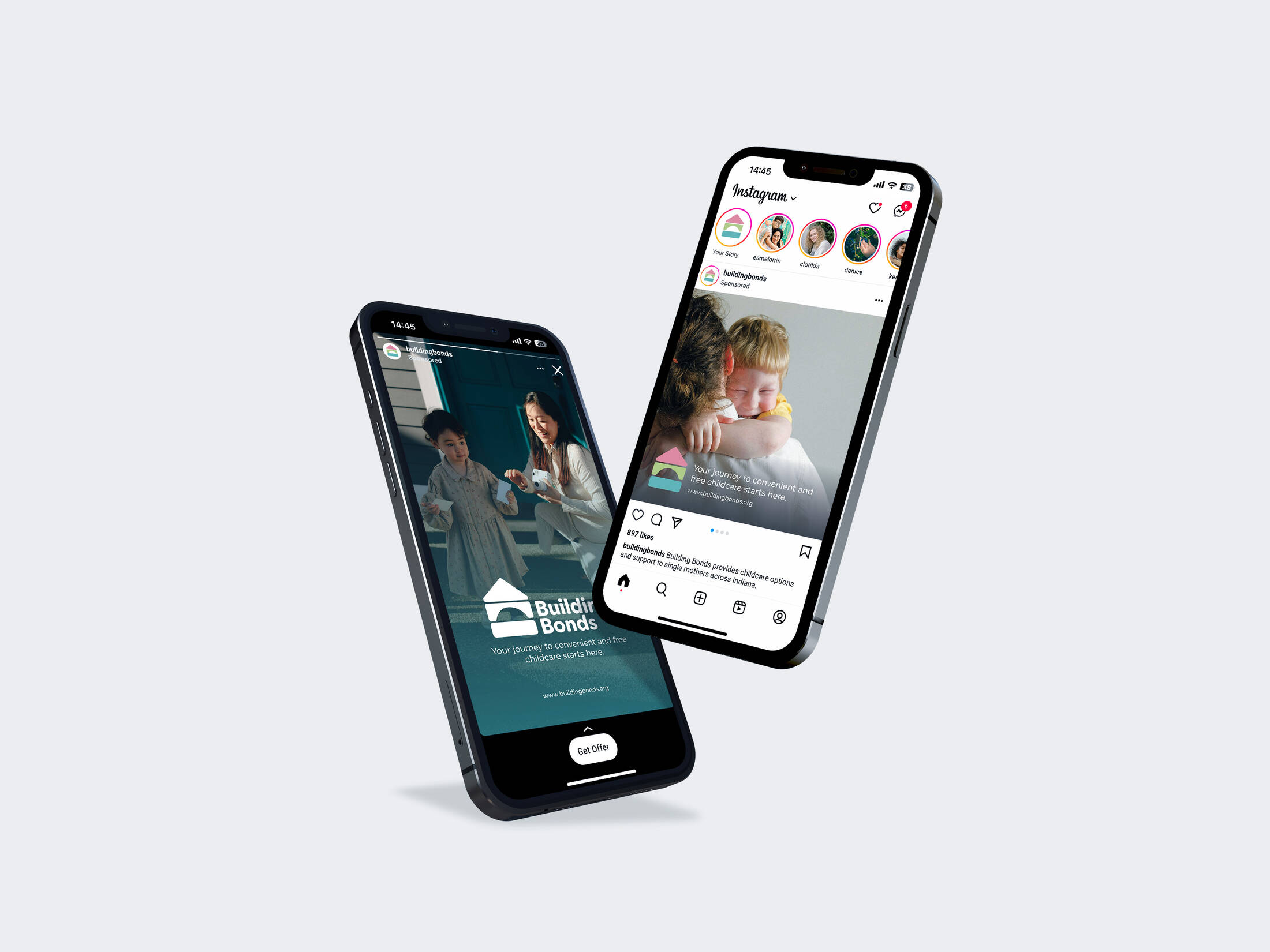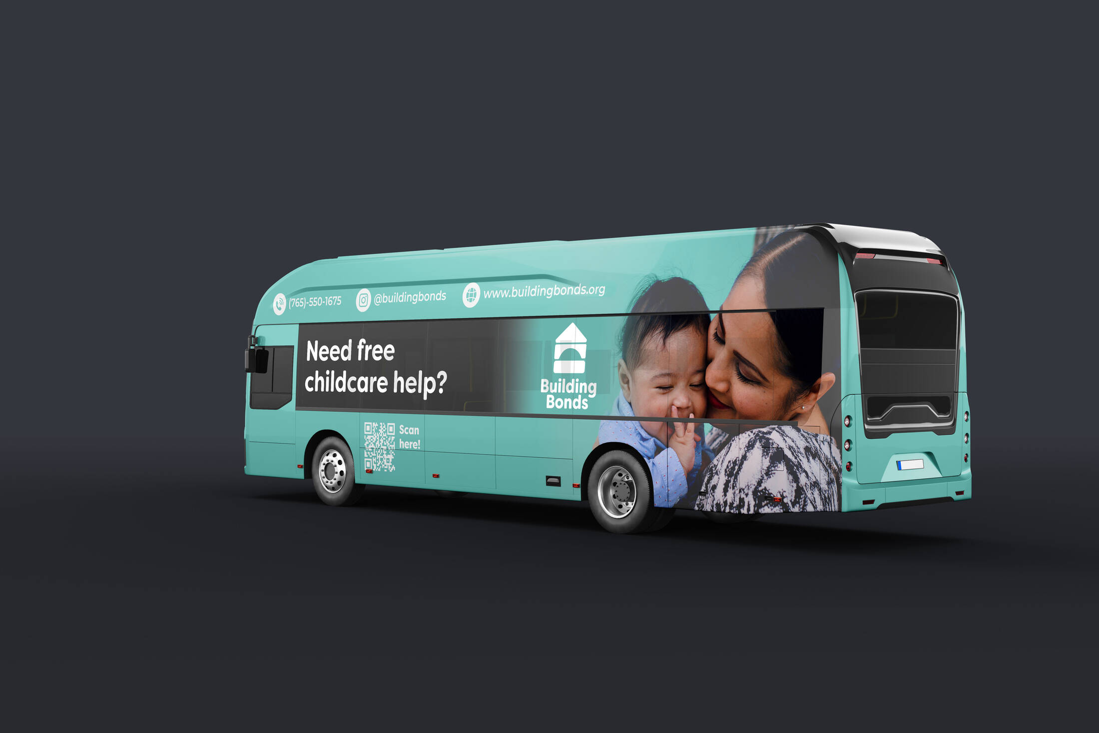 This design campaign is for Building Bonds, a hypothetical nonprofit organization that was created with the mission to empower Indiana single mothers through free and convenient childcare support. Bus wraps and social media ads were utilized to spread awareness of Building Bonds to single mothers across the state of Indiana.