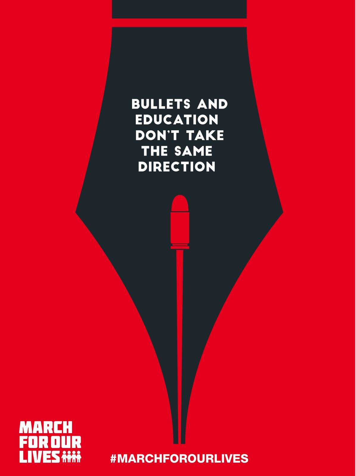 This professional campaign titled 'Bullets and Education Don't Take the Same Direction' was published in Jordan in March, 2018. It was created for the brand: March For Our Lives, by ad agency: Adpro Communications. This Print medium campaign is related to the Public Interest industry and contains 1 media asset. It was submitted over 7 years ago.