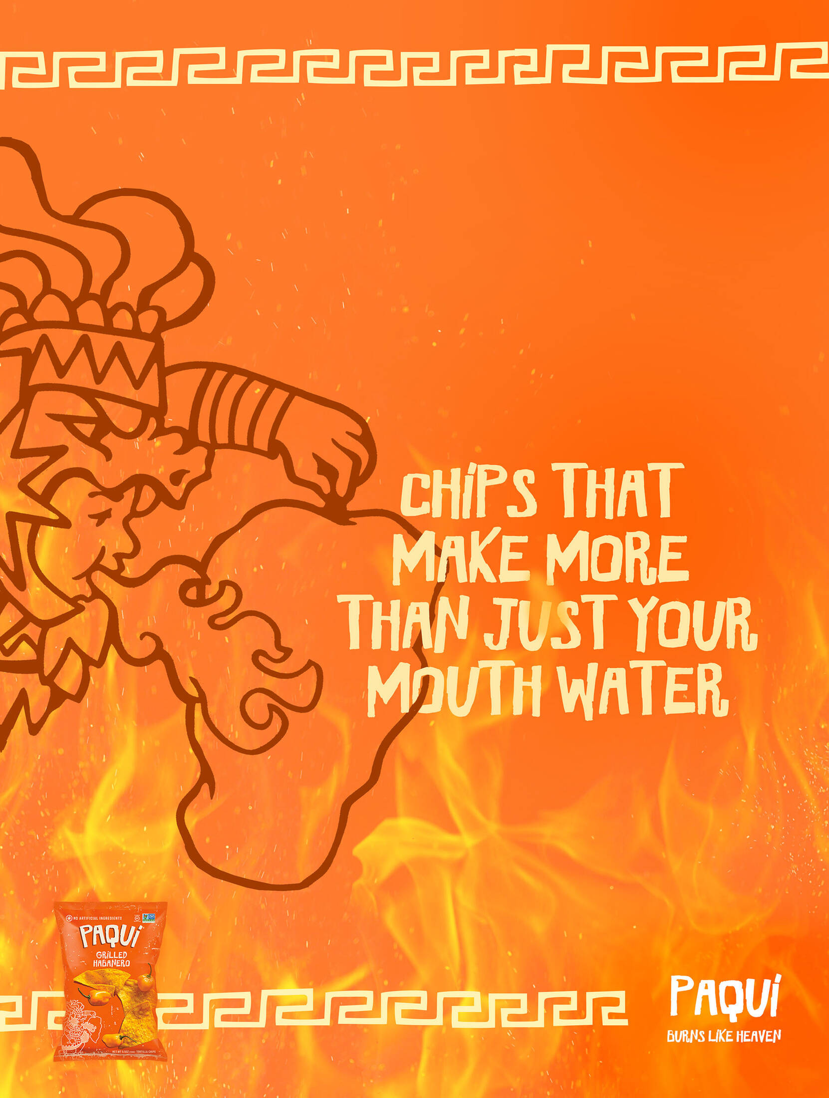 This student campaign titled 'Burns Like Heaven' was published in United States in May, 2017. It was created for the brand: Paqui, by ad school: University of Texas. This Print medium campaign is related to the Food industry and contains 3 media assets. It was submitted over 5 years ago by Copywriter: Julian Castillo of GSD&M.