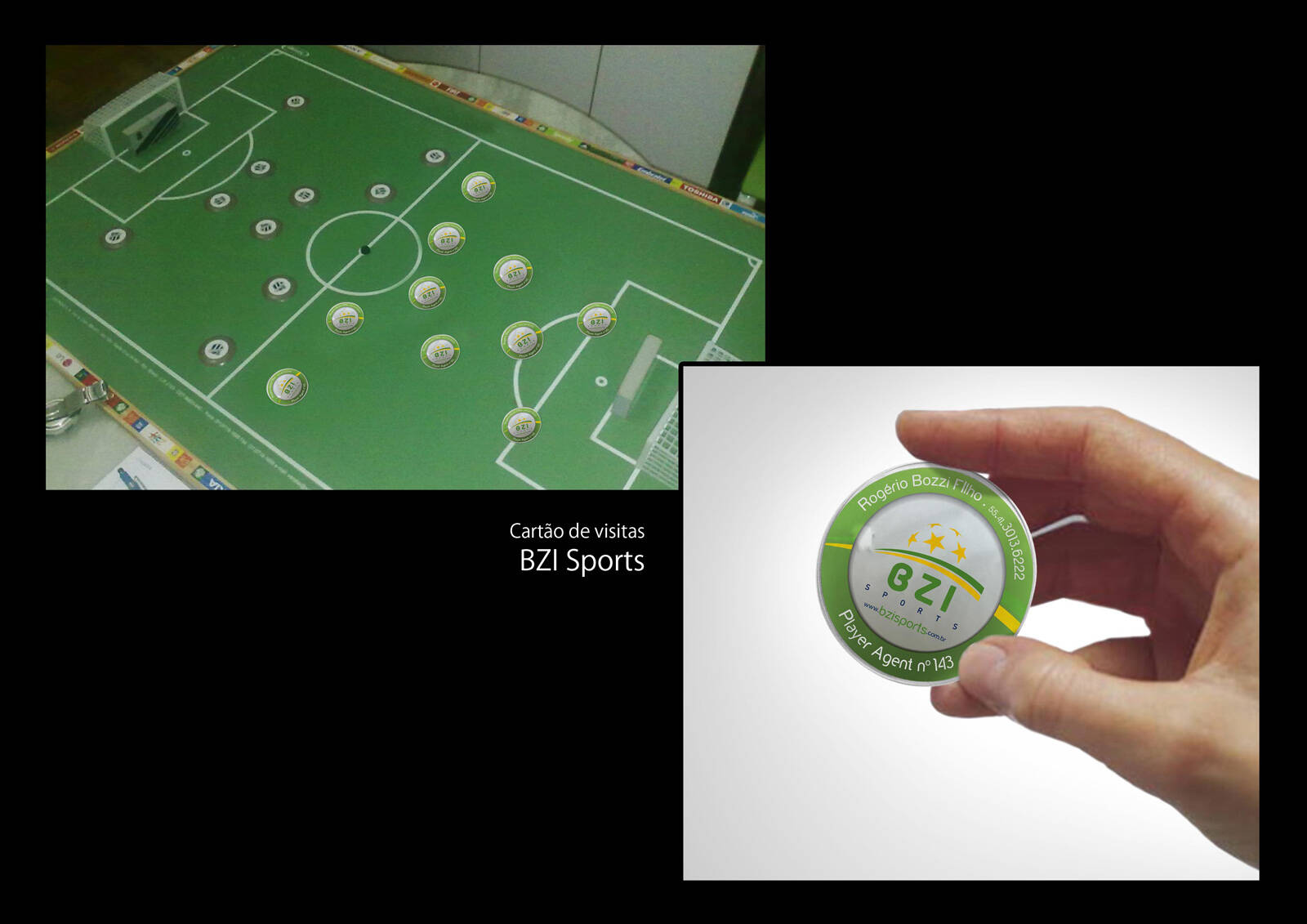 The BZI Sports is a company that cares about football players' contracts. For disclosure, we create a business card made of button football, very popular game in Brazil.