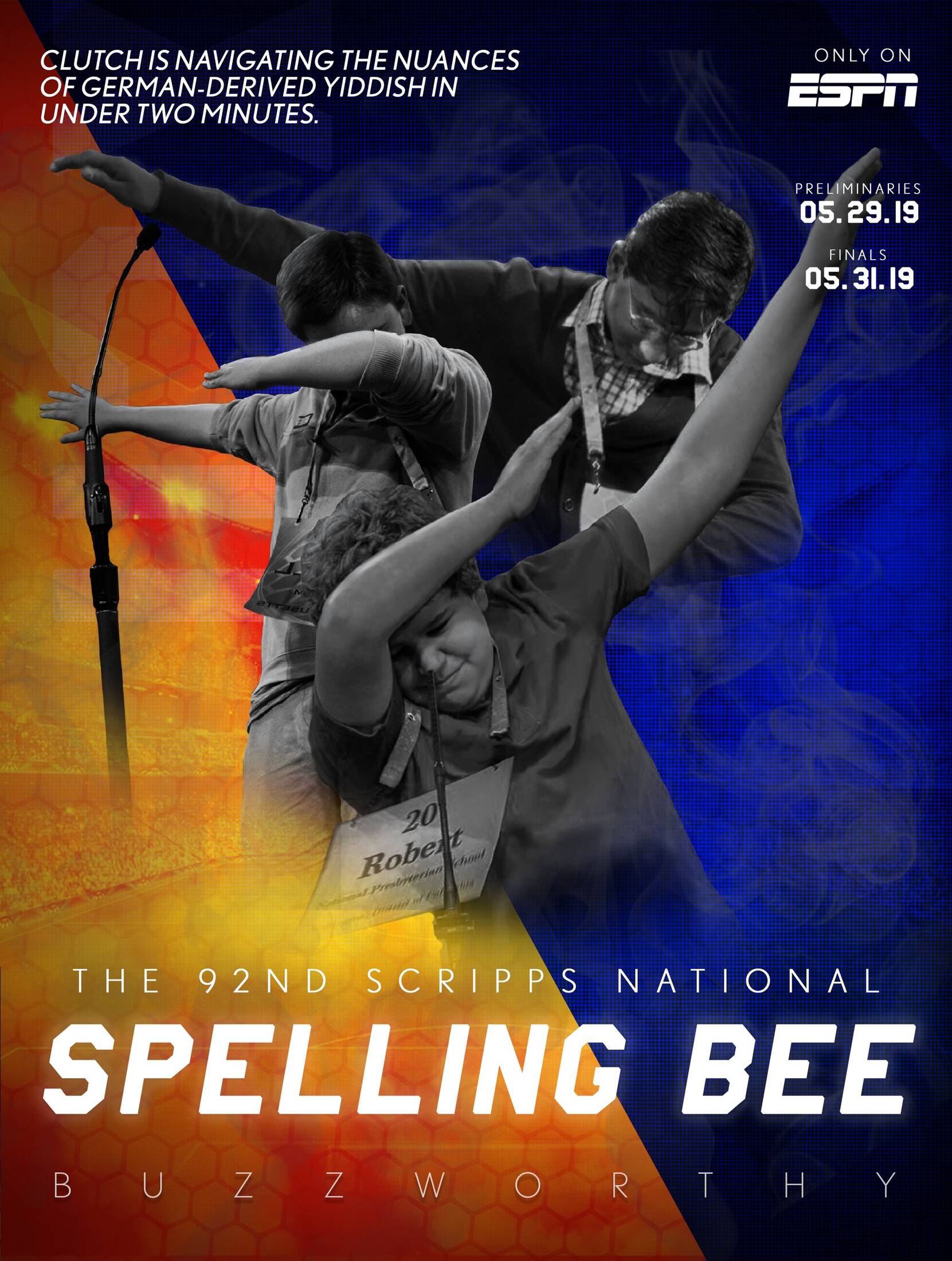 This student campaign titled 'Buzzworthy' was published in United States in December, 2018. It was created for the brands: ESPN and Scripps National Spelling Bee, by ad school: University of Texas. This OOH Outdoor medium campaign is related to the Media and Recreation, Leisure industries and contains 5 media assets. It was submitted over 6 years ago.