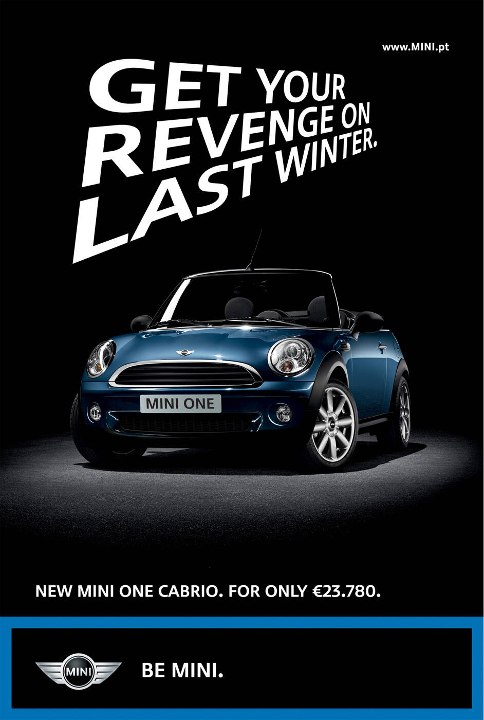 This professional campaign titled 'Cabrio revenge' was published in Portugal in May, 2010. It was created for the brand: Mini, by ad agency: Y&R. This Print medium campaign is related to the Automotive and Personal Transportation industry and contains 1 media asset. It was submitted over 15 years ago.