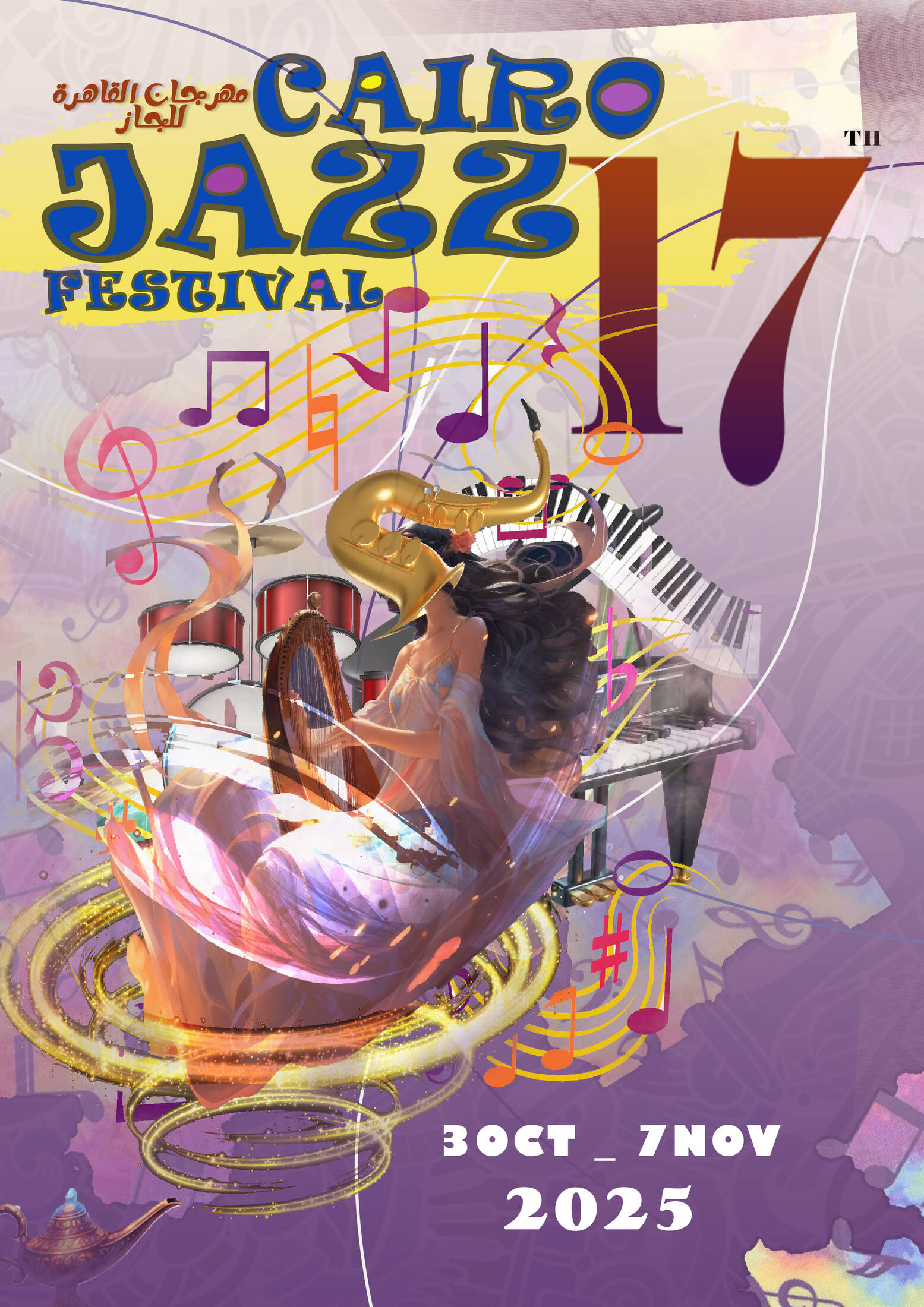 This is more than just an advertisement; it is a visual celebration of creativity, suggesting that the Cairo Jazz Festival is a place where reality fades and the magic of music takes over.